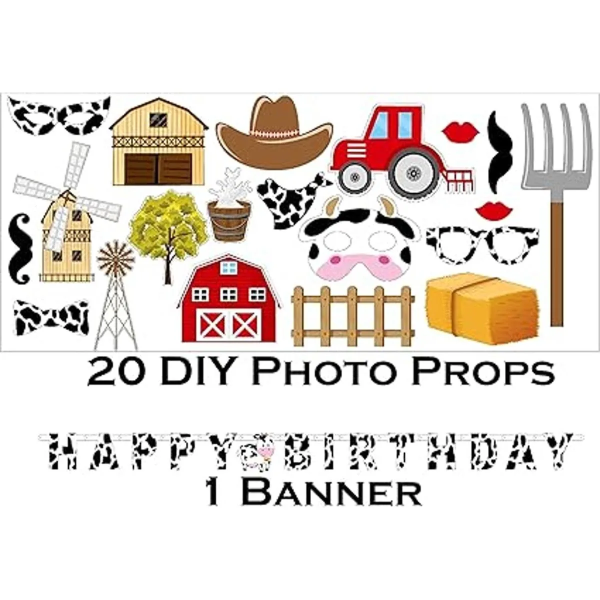 20 accesorios para fotos, 1 pancarta de feliz cumpleaños, 2 manteles de mesa: 54 x 108 pulgadas