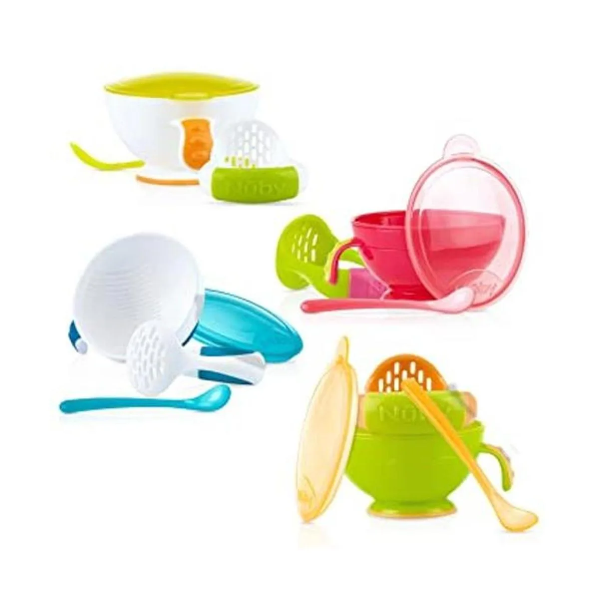 Sistema de 4 piezas para preparación y alimentación del bebé Nuby Garden Fresh Mash N Feed, Jardín fresco Nuby, talla única , Los colores pueden variar