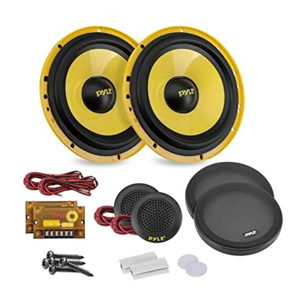 Sistema de altavoces de componentes personalizados de 2 vías de 6.5 pulgadas, componente de 400 vatios con cesta de plástico galvanizada, envolvente de goma butilo y estructura magnética de 40 onzas, juego de accesorios de instalación de alambre incluido Pyle PLG6C
