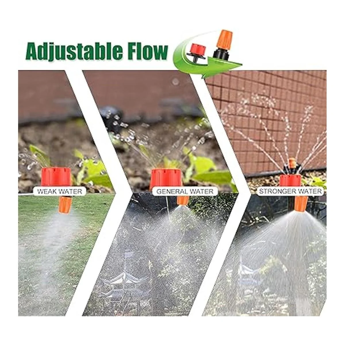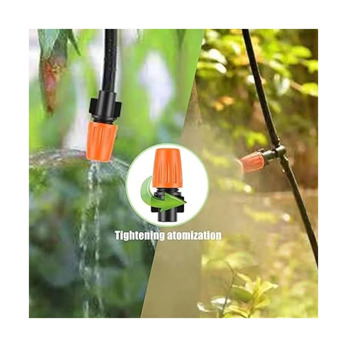 Amplia gama de usos: el kit de riego automático es muy adecuado para atomización, riego de césped, terrazas, refrigeración de techo, agricultura, verduras, invernaderos, parterres, piscinas, etc.