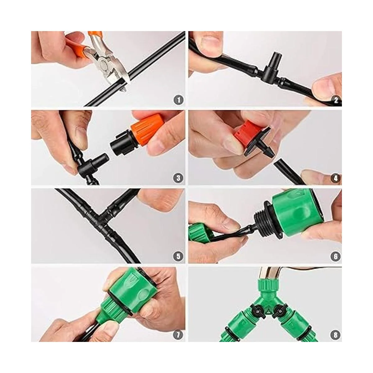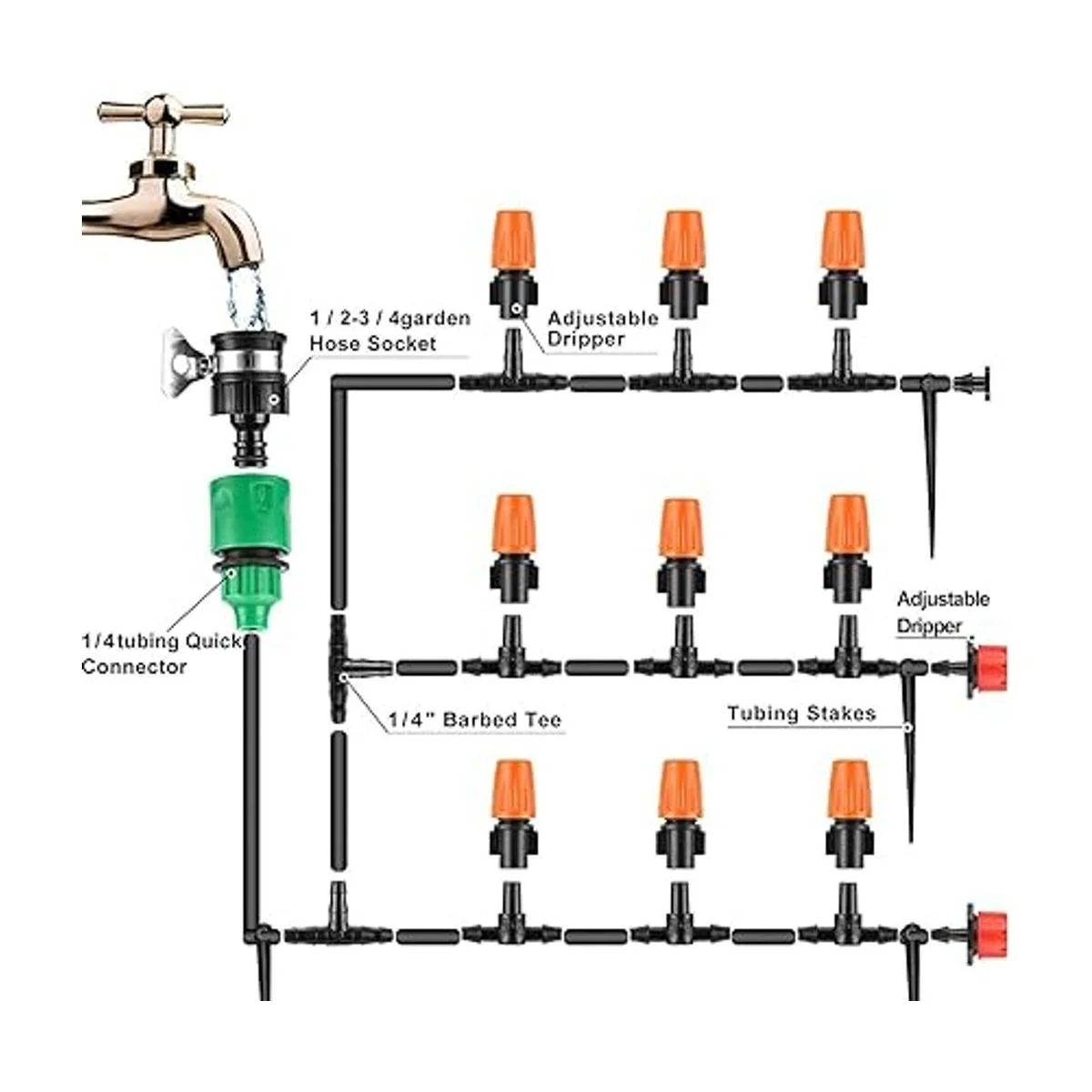 Totalmente funcional: este kit incluye 2 tipos de conectores de grifo, y el tubo y conectores de dos tamaños, en el extremo son gotero, aspersor y broche. Con una conexión roscada utilizada para grifos roscados de 1 y 3/4 pulgadas, otro se utiliza para grifos sin rosca.