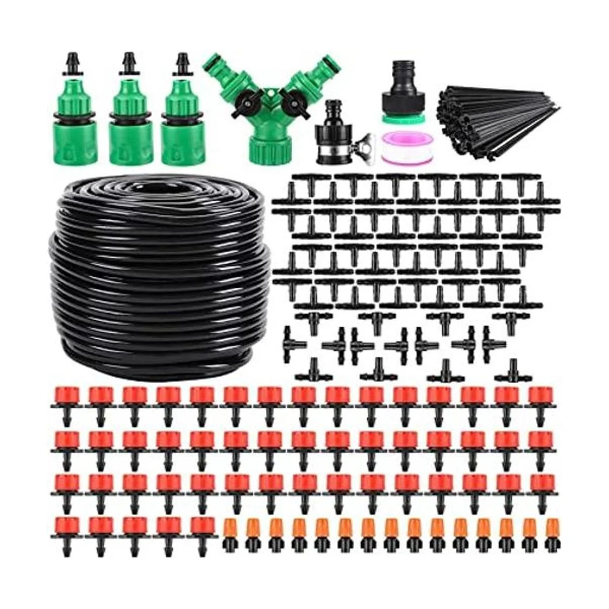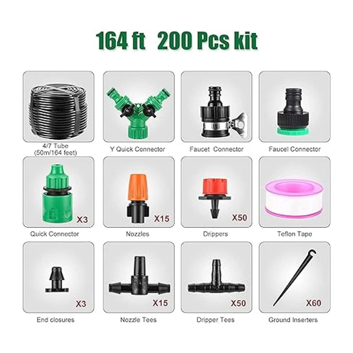 Sistema de riego automático para jardín, 164 pies, 200 unidades, kit de riego por goteo de 14 pulgadas, kit de riego automático para jardín, patio, invernadero, cama de flores, césped