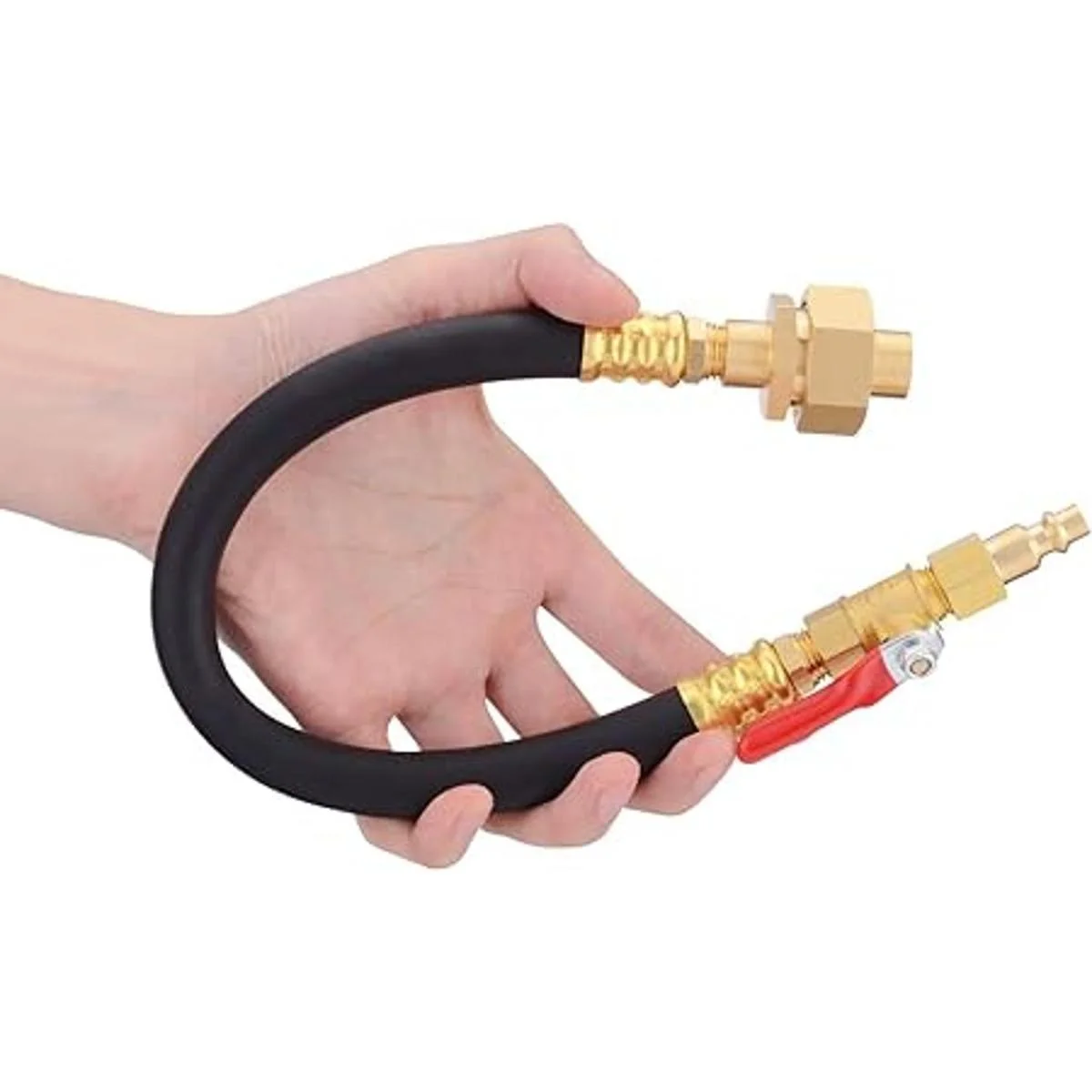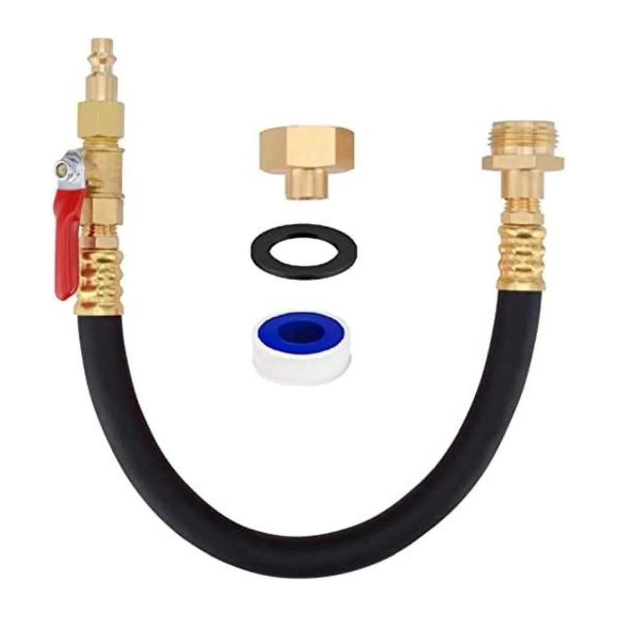 Sistema de riego Winterize de latón sin plomo, 12.0 in, para autocaravanas, barcos, autocaravanas, remolques y remolques de viaje compresor de aire de conexión rápida a 34 pulgadas de manguera de jardín con válvula