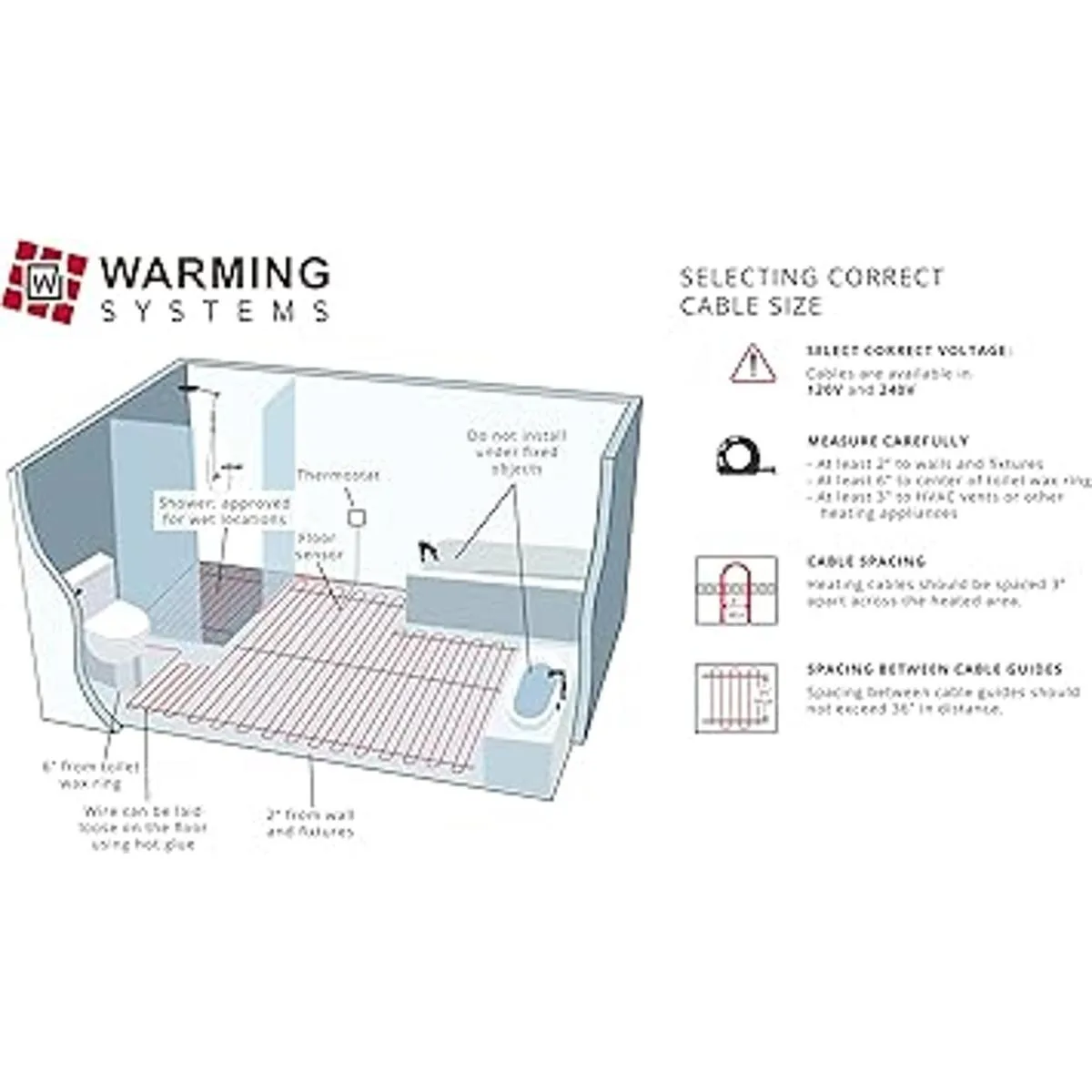 Cable de 15 pies cuadrados con termostato programable digital, sistema eléctrico de calentamiento de calor para suelo