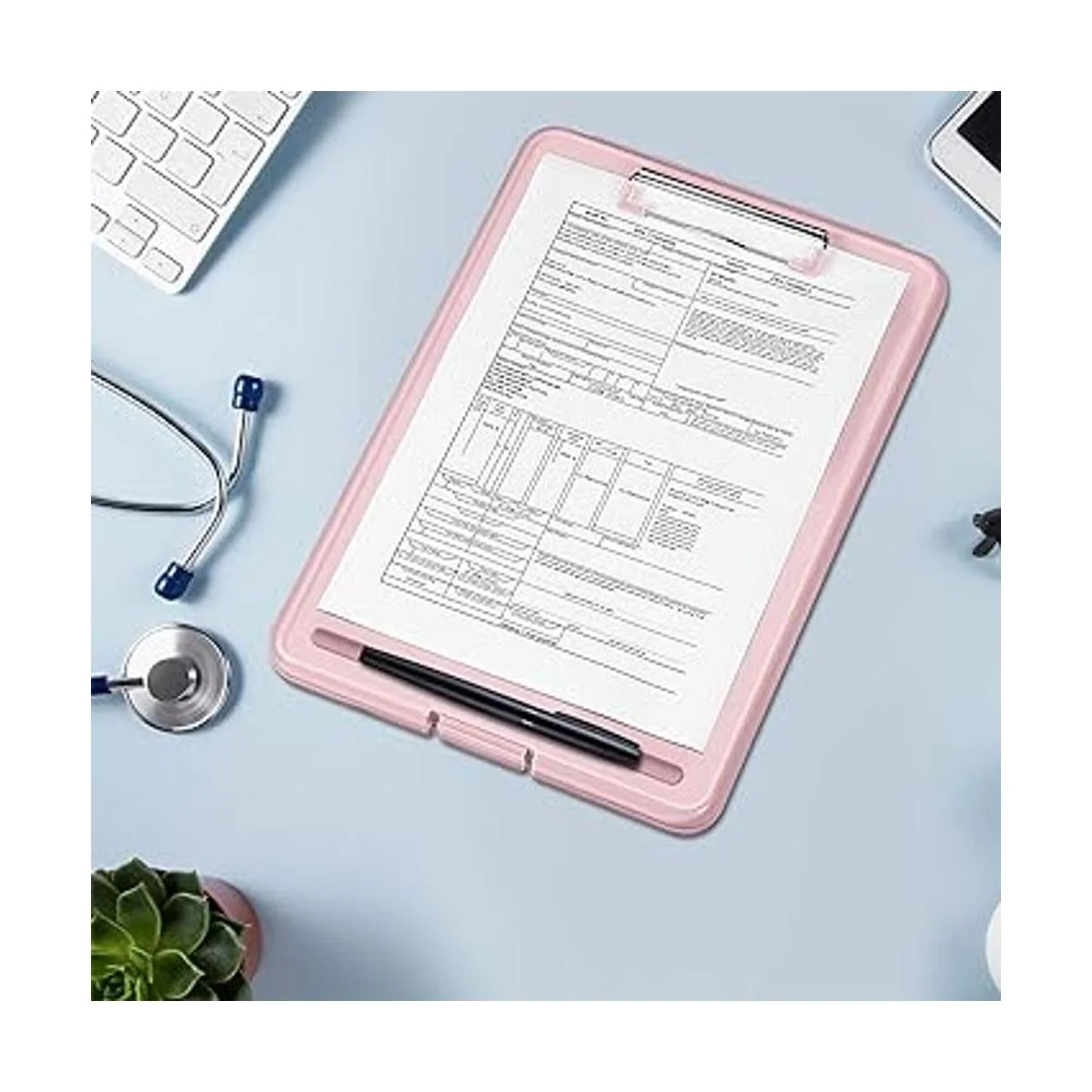 SITHON Portapapeles de enfermería con almacenamiento, portapapeles de escritura portátil ligero con compartimento organizador para enfermeras, médicos, profesores, estudiantes, entrenadores, oficina, escuela, color rosa