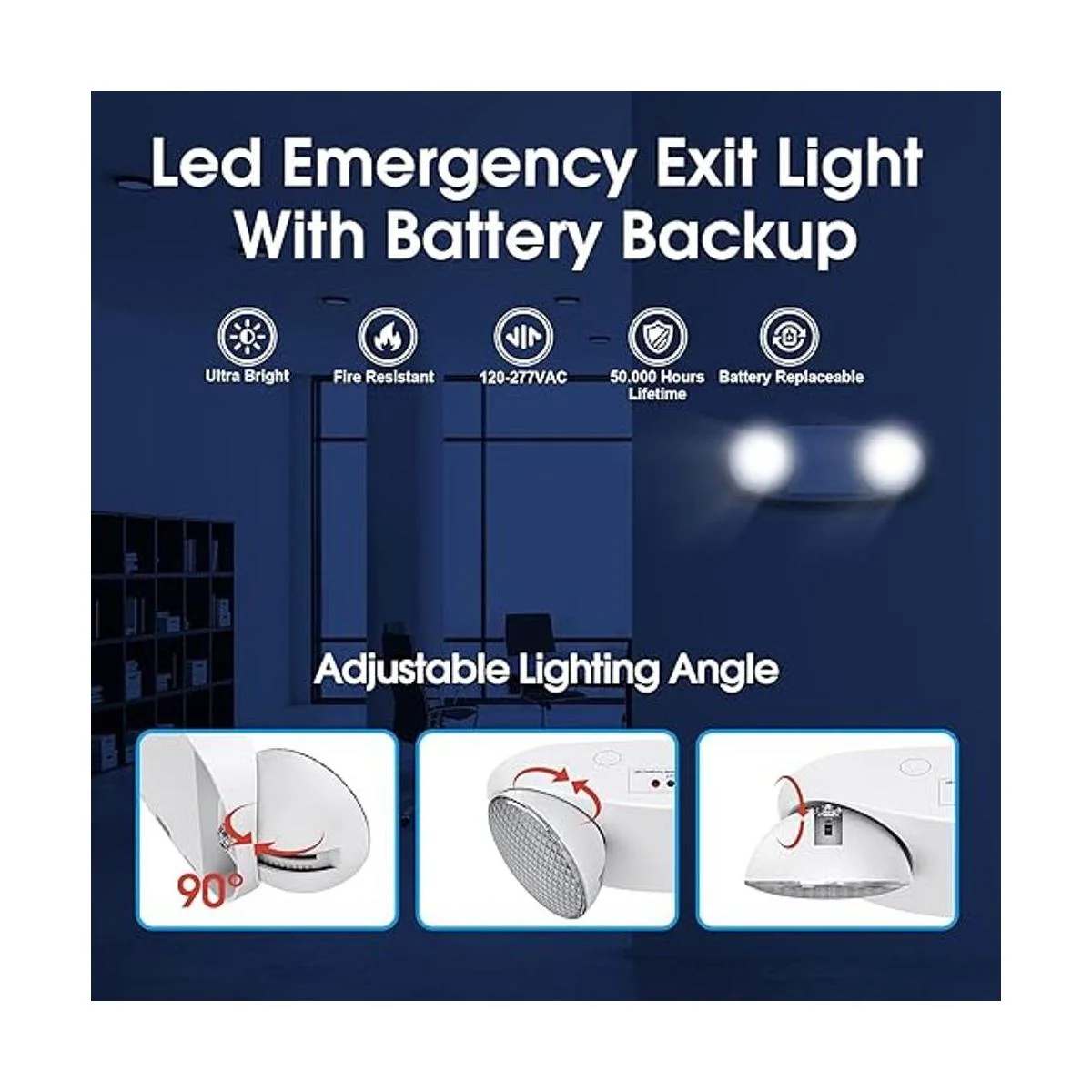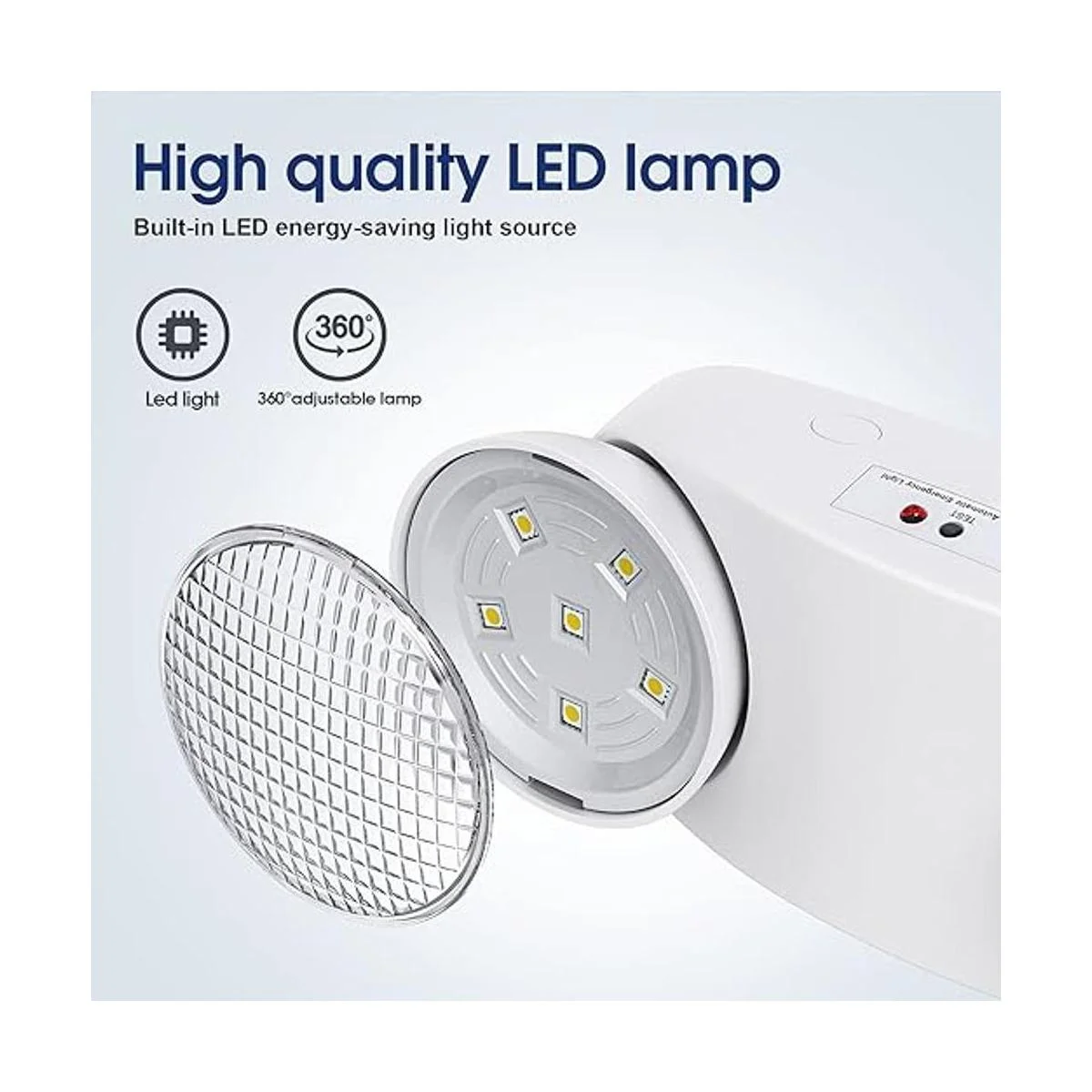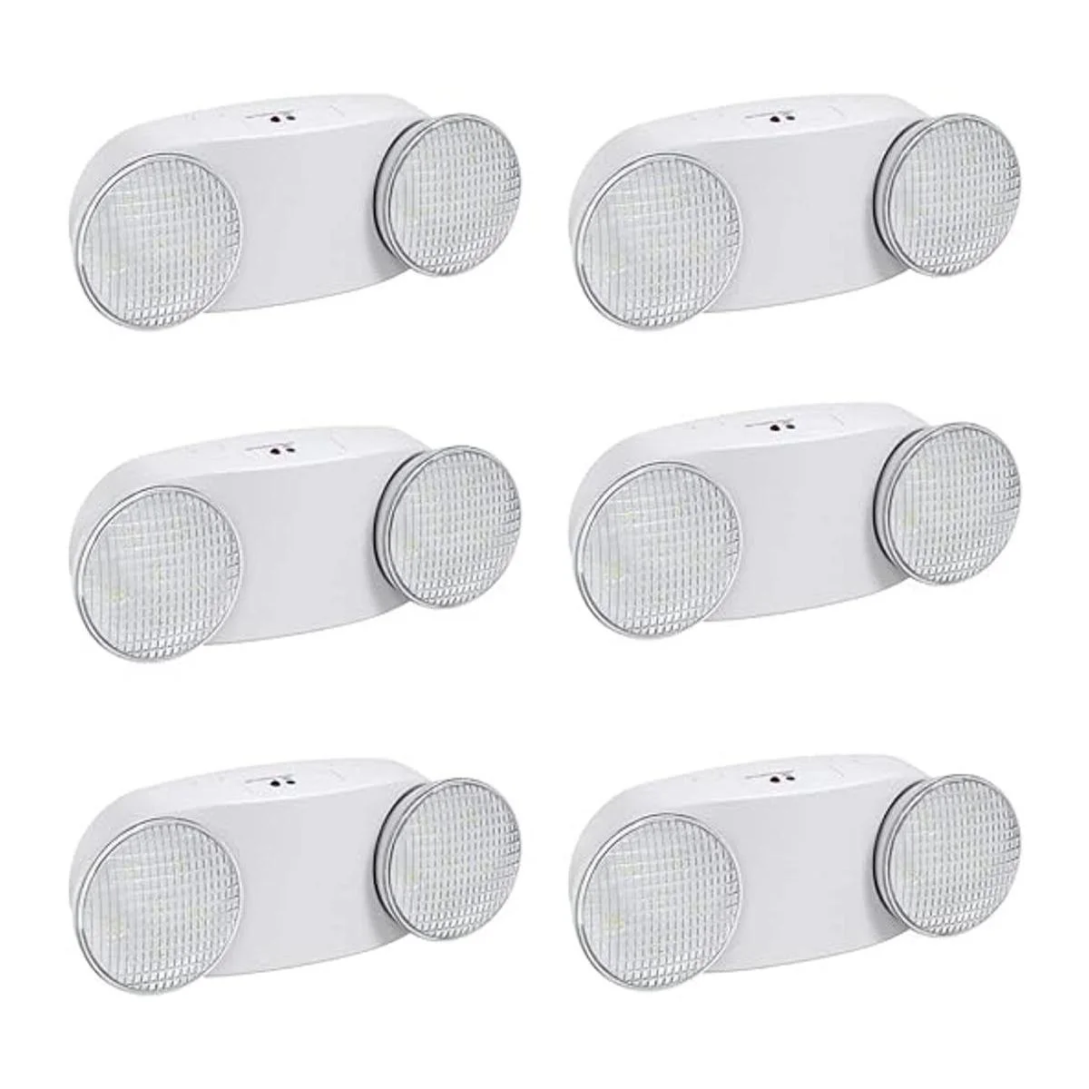 SiTiSFi Luz de emergencia con respaldo de batería, accesorios de luces de emergencia comerciales, dos cabezales ajustables LED de iluminación de emergencia, CA 120277 V, certificado UL paquete de 6