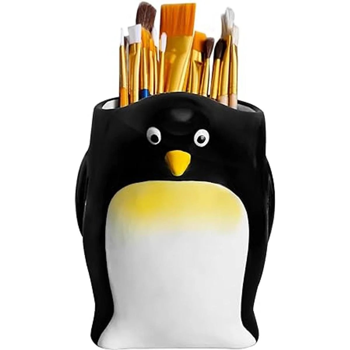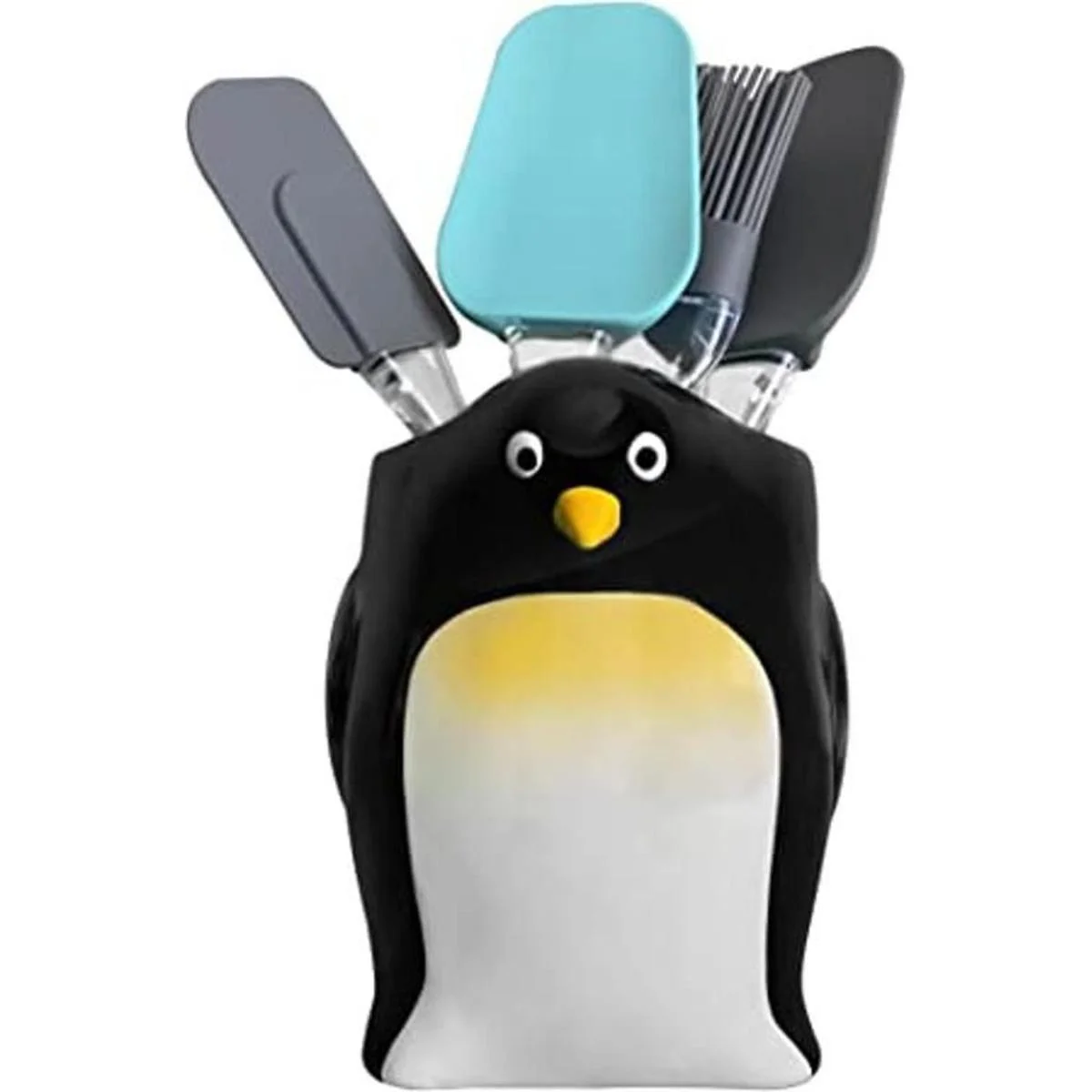 Sixdrop Soporte para utensilios de pingino, bonito recipiente de almacenamiento de cocina, decoración del hogar, pingino de oficina, decoración del hogar, soporte de cerámica para regalo de pinginos