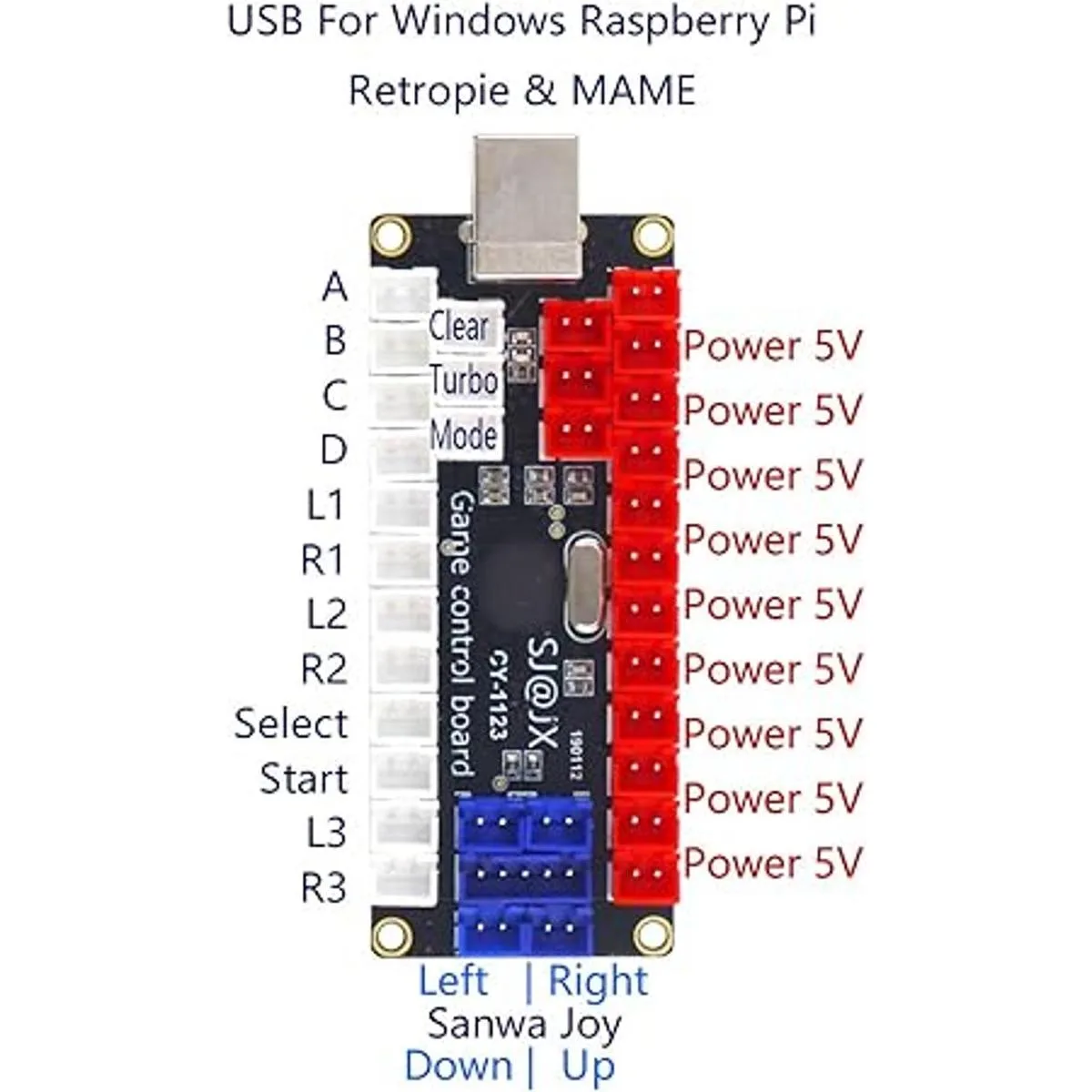 SJJX Arcade Kit de control de placa de codificador USB, LED, 5 V, potencia, SANWA