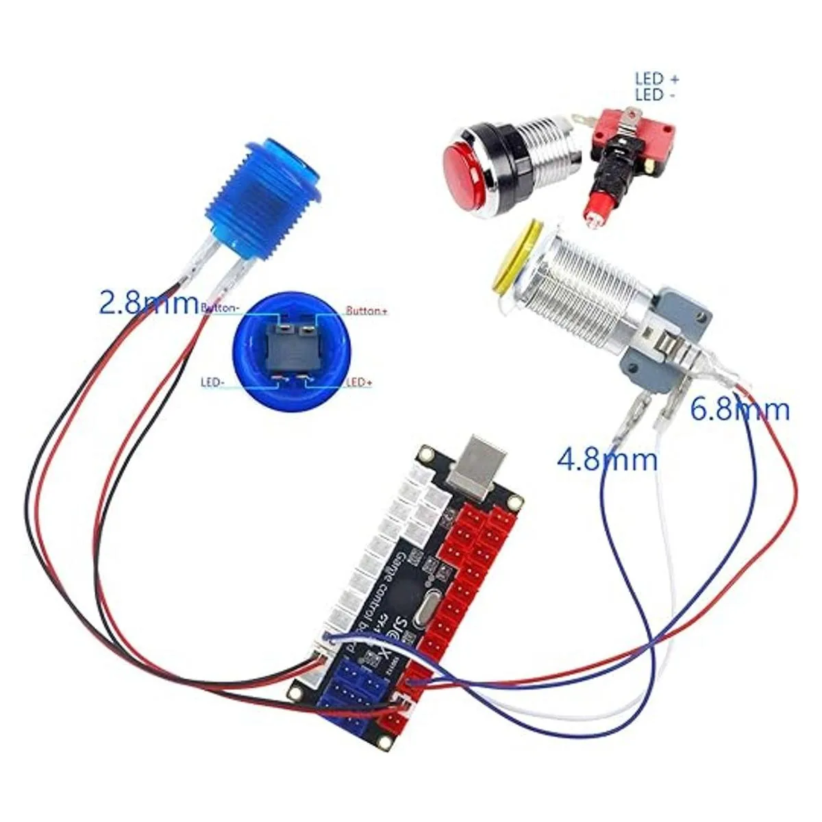 SJ@JX Arcade Kit de control de placa de codificador USB, LED, 5 V, potencia, SANWA