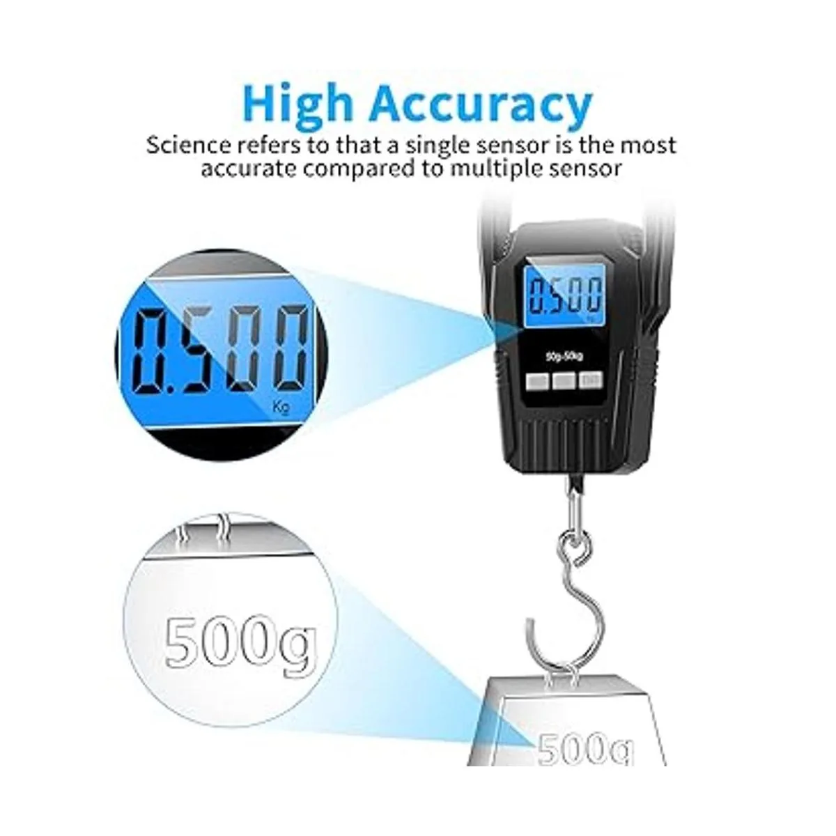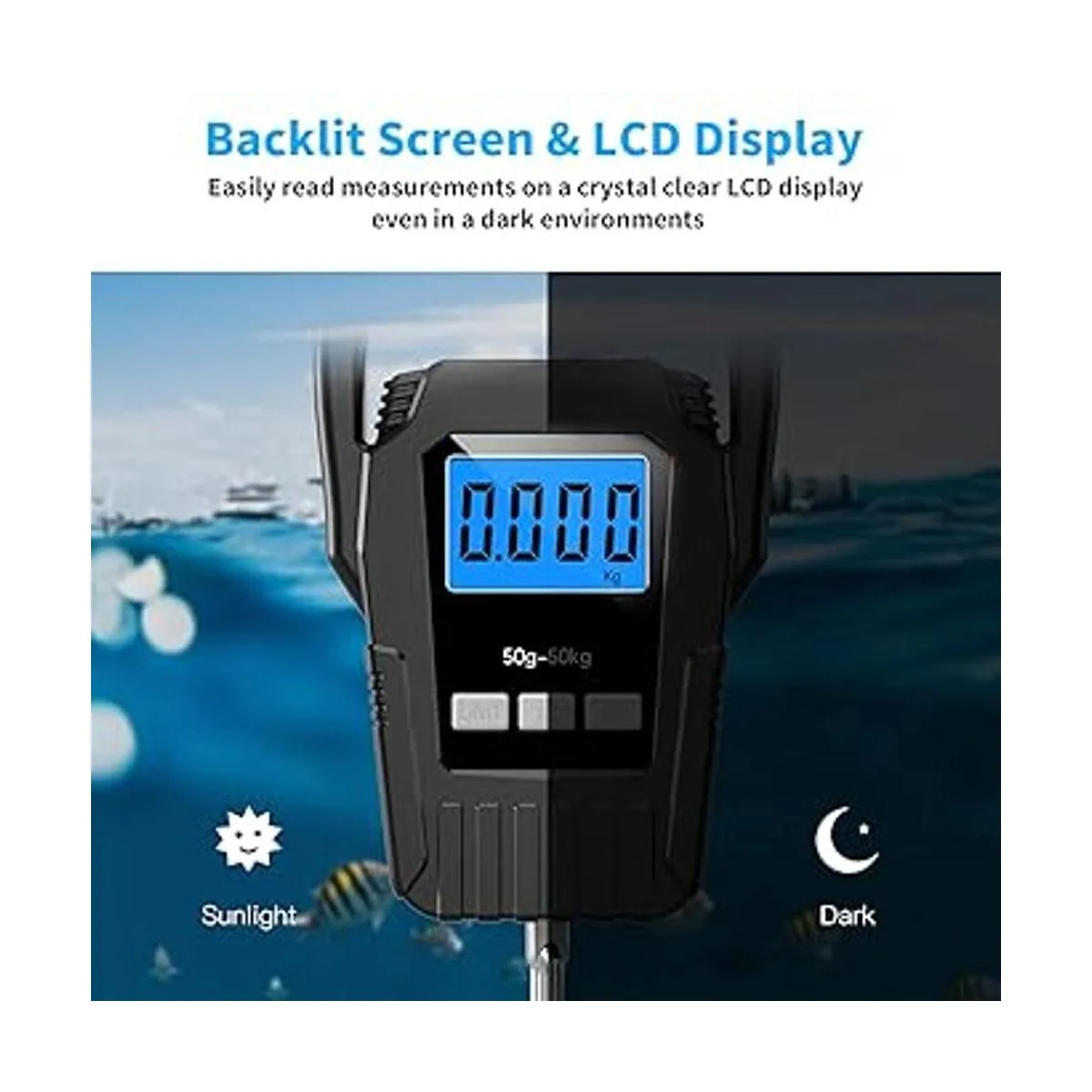 Resultados precisos: la báscula de pesca proporciona resultados fiables y precisos con un incremento de 0.0 lbs. Capacidad de pesaje de hasta 110.2 lbs. Su nivel de precisión también es notable debido a sus excelentes sensores de alta precisión.