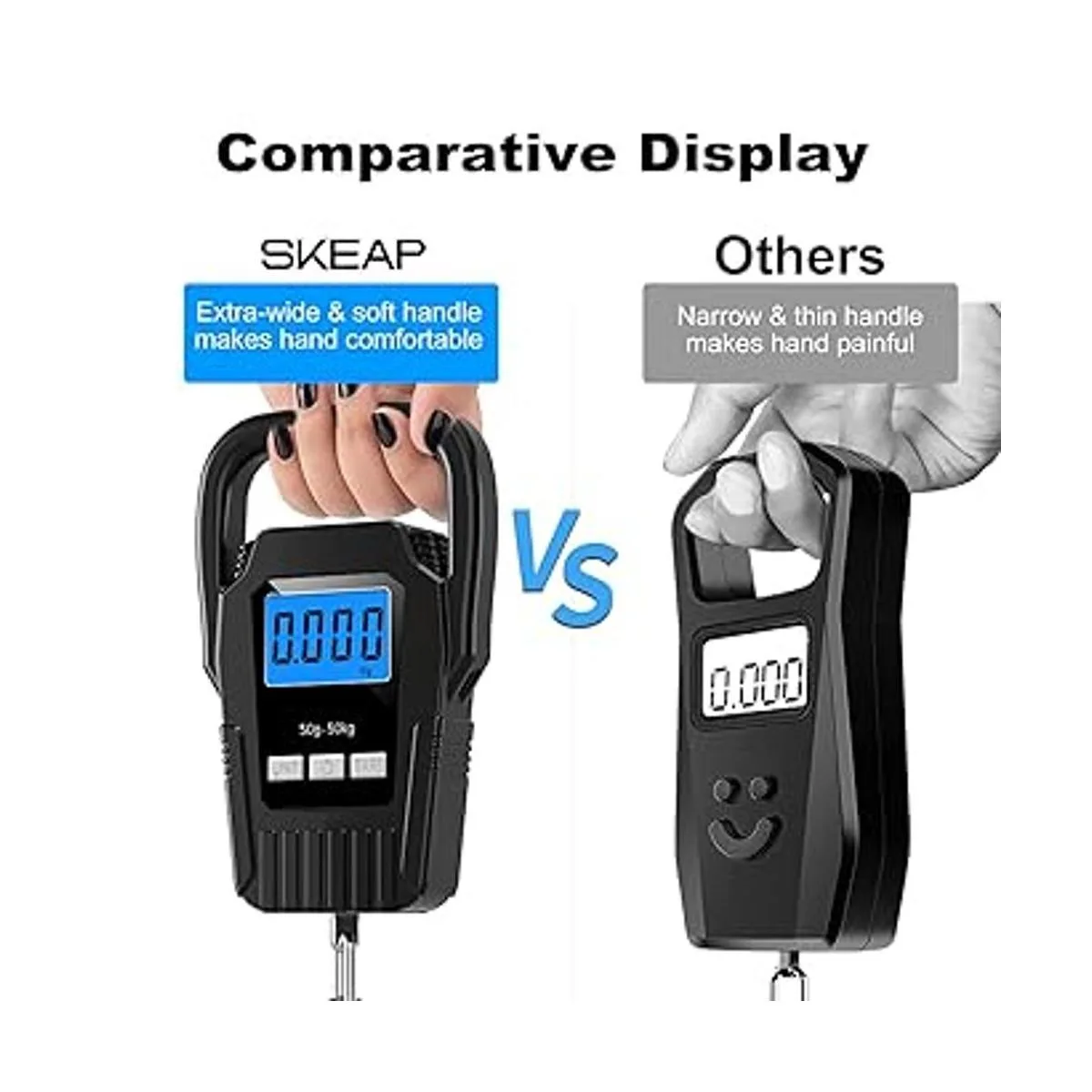 SKEAP Escala de pesca digital para pescar, escala de equipaje de 110 libras110.2 lbs, mango grande mejorado y pantalla LCD retroiluminada, balanza electrónica, balanza postal de pesca digital, color negro