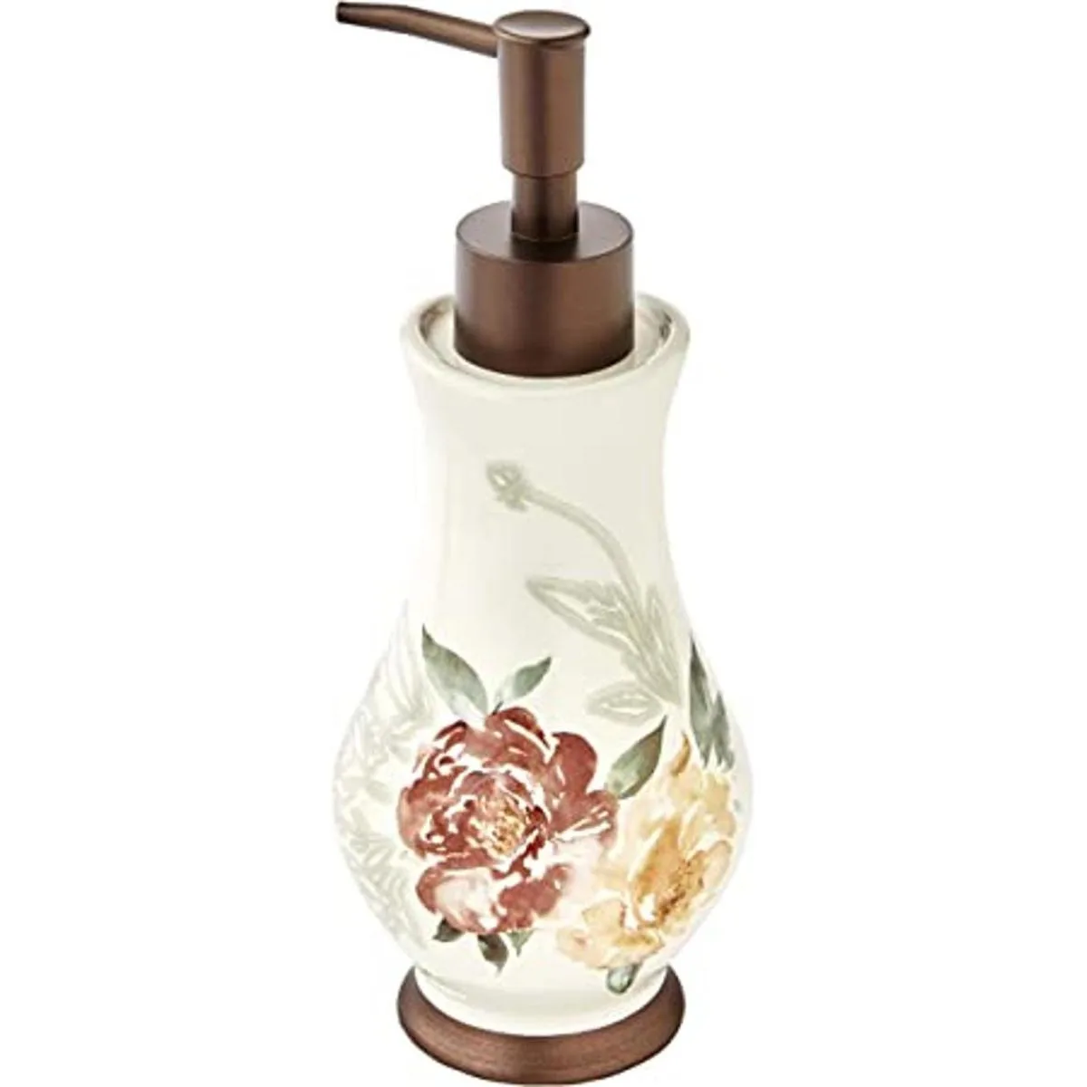 Marfil esmaltado con un diseño floral similar a la acuarela y ribete de bronce antiguo