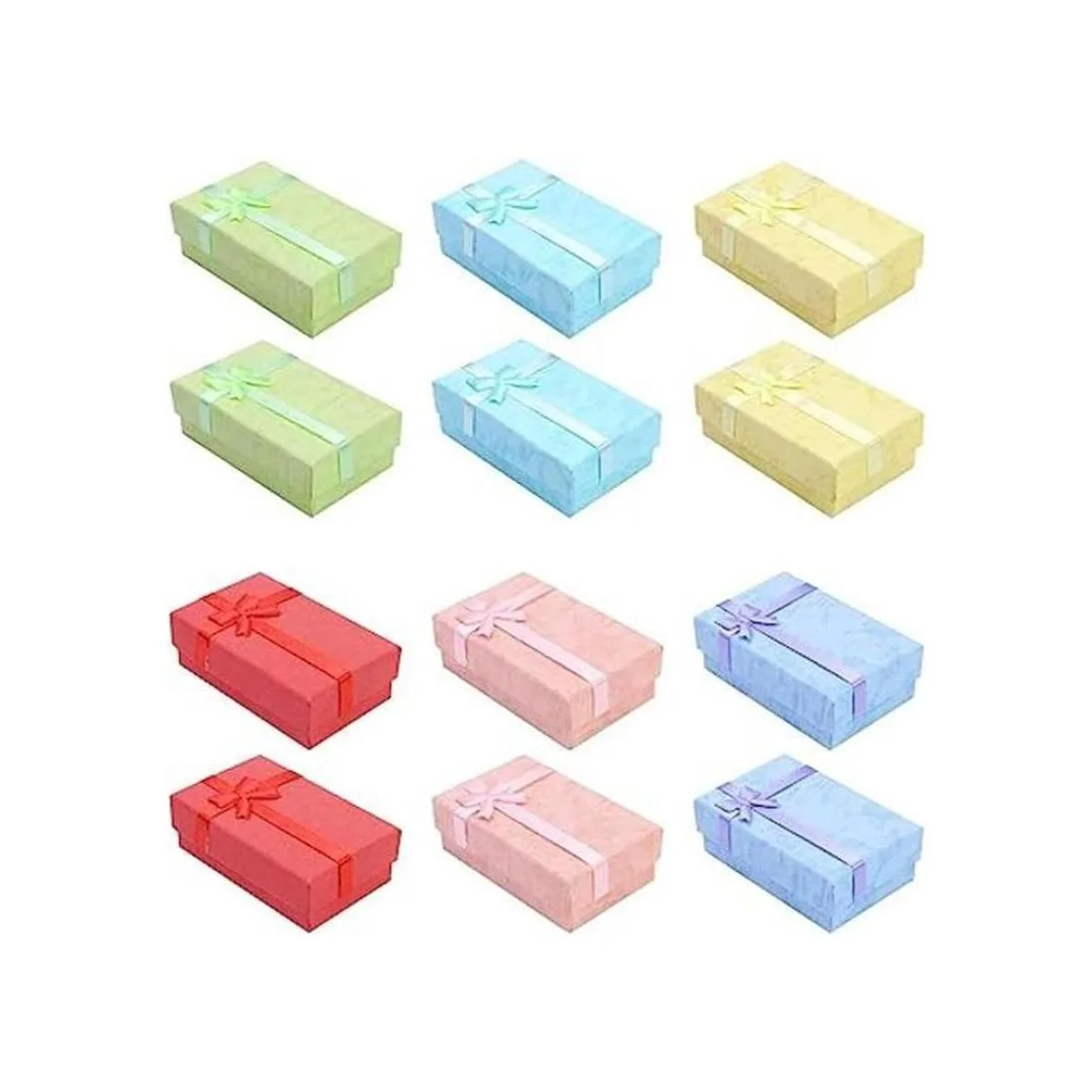 SKPPC 24 cajas de regalo de papel con tapas y lazos de cinta para exhibición de joyas, relojes, collares, aretes y caja de embalaje de regalo, 6 colores
