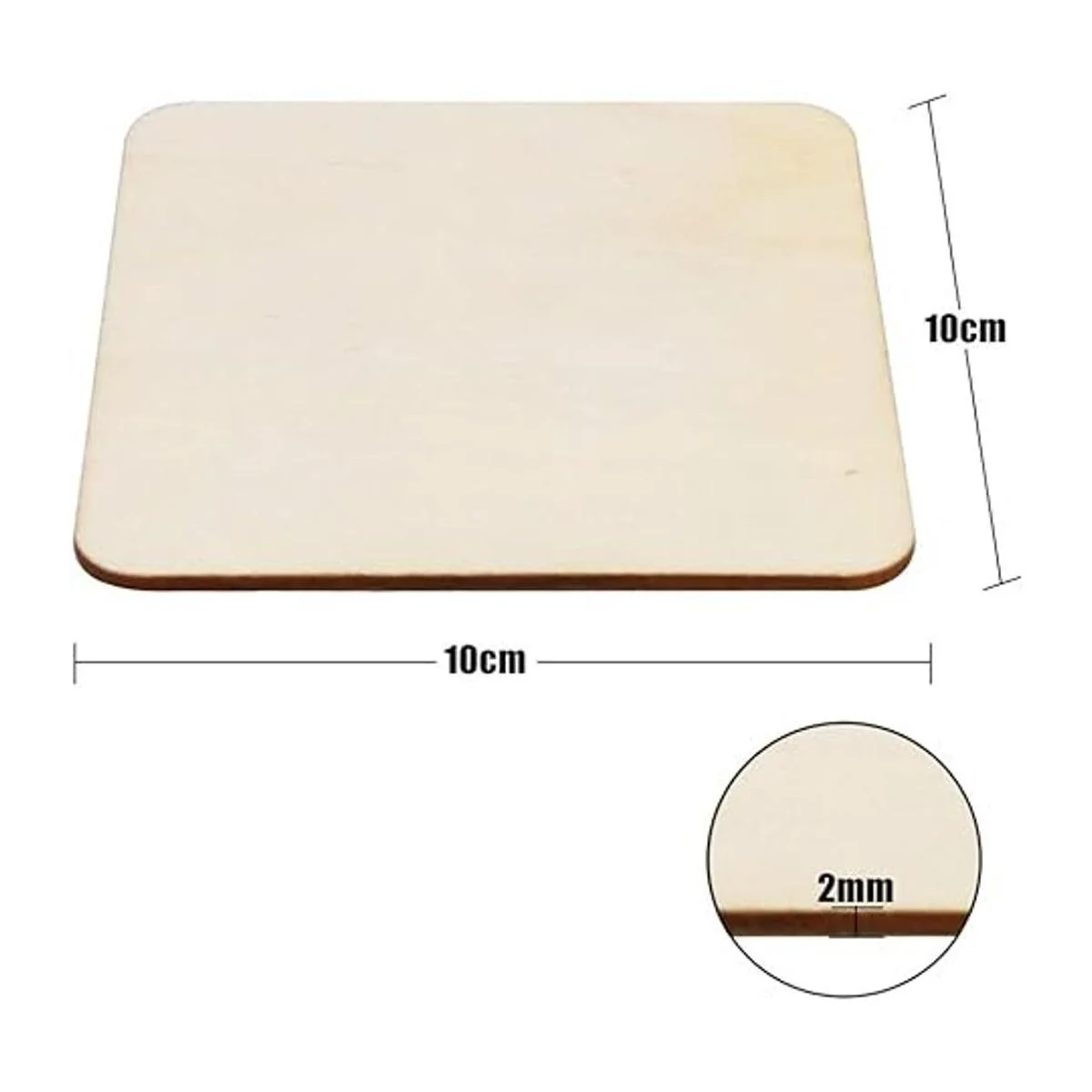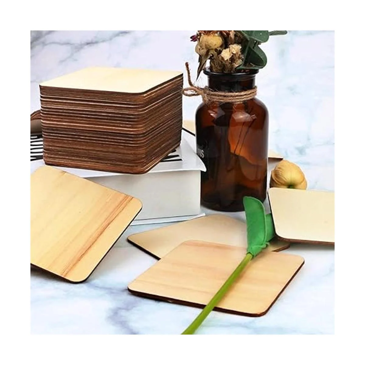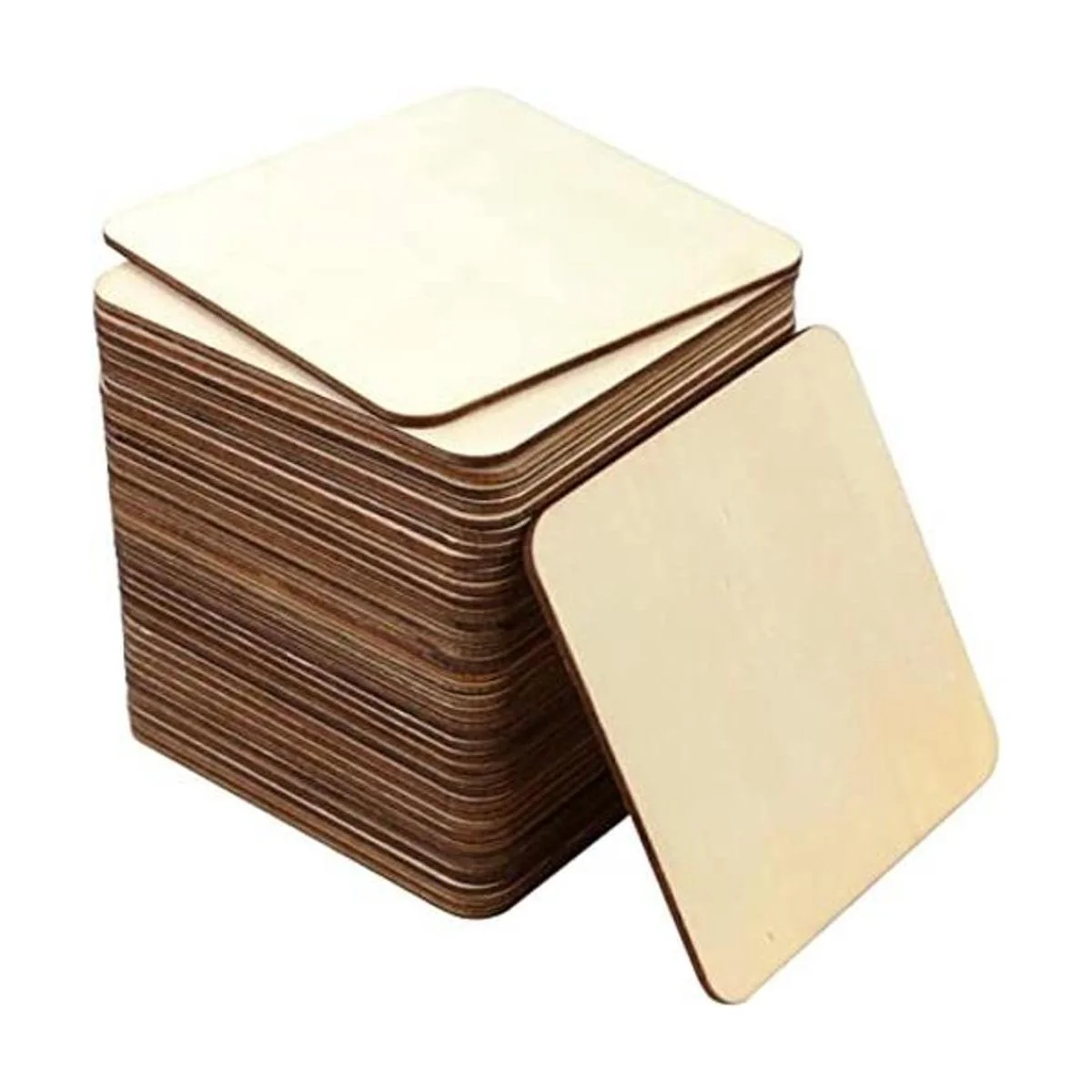 Diseño de rodajas cuadradas: estas piezas de madera están diseñadas con esquina redonda que son seguras y bonitas. Puede evitar daños causados por esquinas de pico. El tamaño es de 4 x 4 pulgadas cuadrada de madera sin acabar.