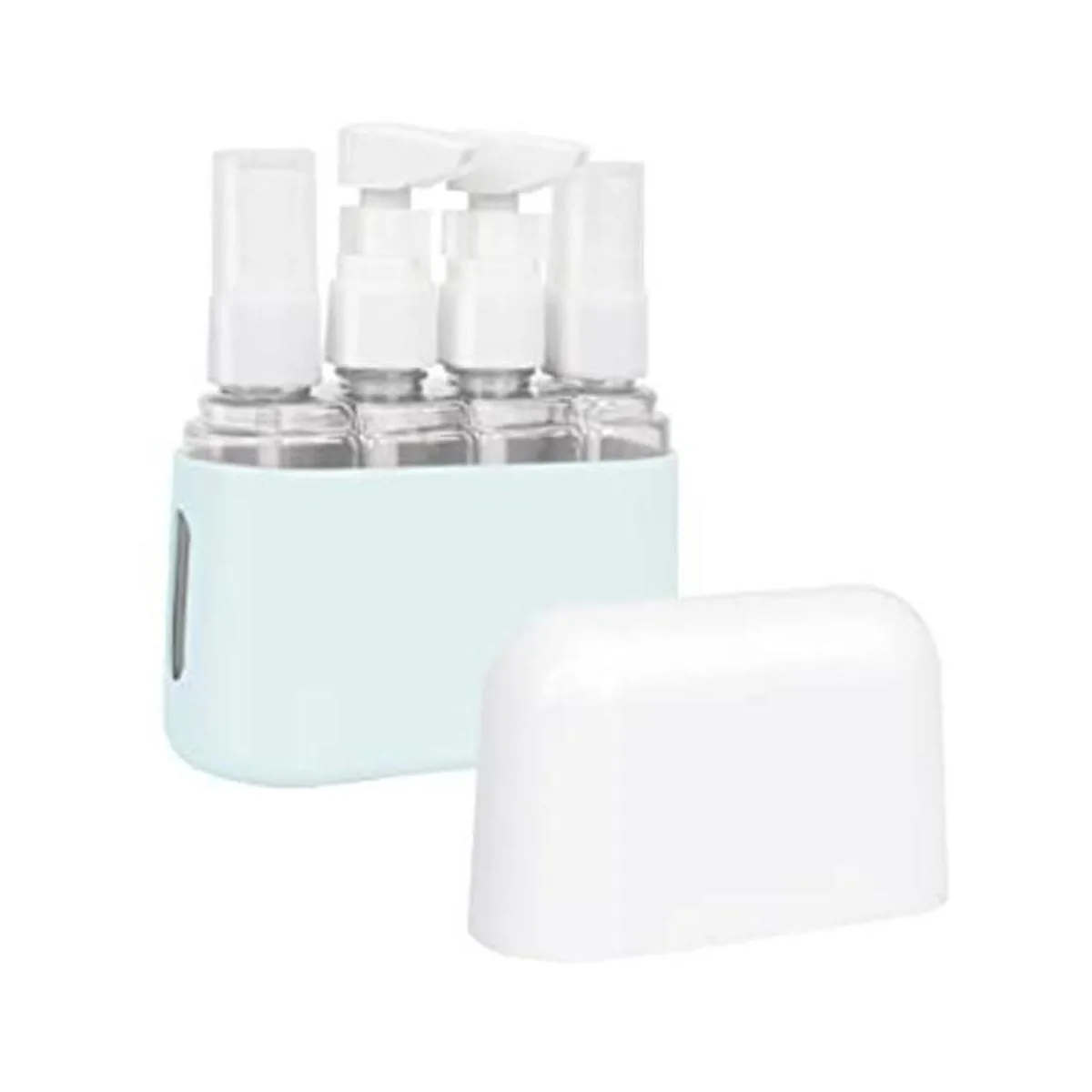 Skycase Juego de botellas de viaje, 4 en 1 contenedores de viaje para artículos de tocador, botellas de plástico recargables a prueba de fugas con tapa, kits de accesorios de avión para champú acondicionador, loción líquidos, azul