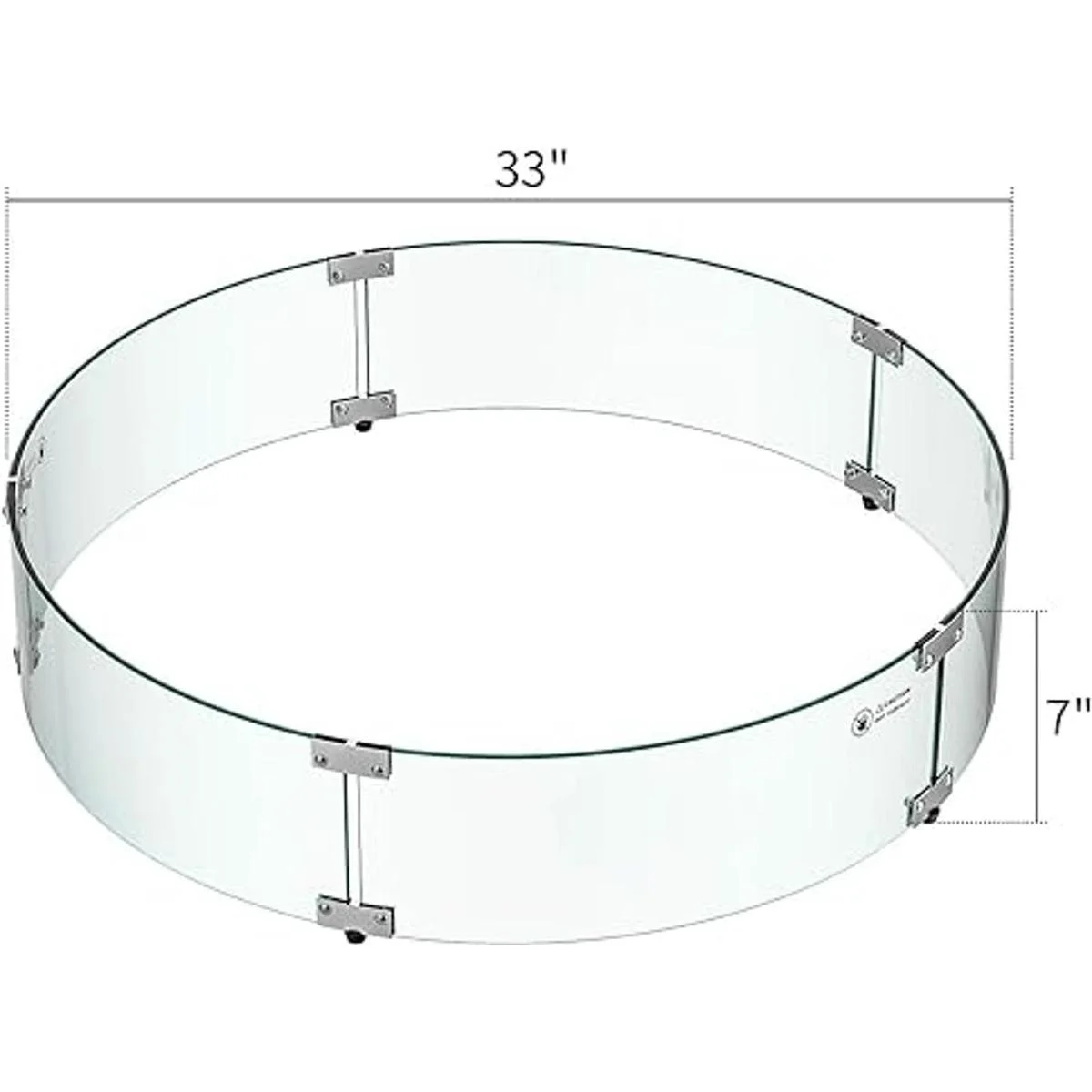 Skyflame Fire Pit Protector de viento redondo de vidrio templado de 33 x 7 pulgadas, apto para sartenes redondas de 31 pulgadas, juego de parabrisas resistente al fuego