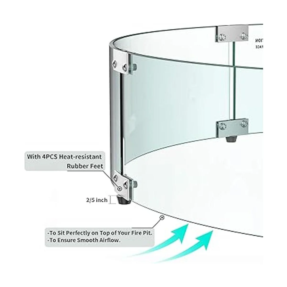 Calidad prémium: hecho de vidrio templado resistente al fuego duradero con bordes pulidos y hardware de aluminio, reduce el impacto del viento para mantener tu estabilidad de llama en el viento.