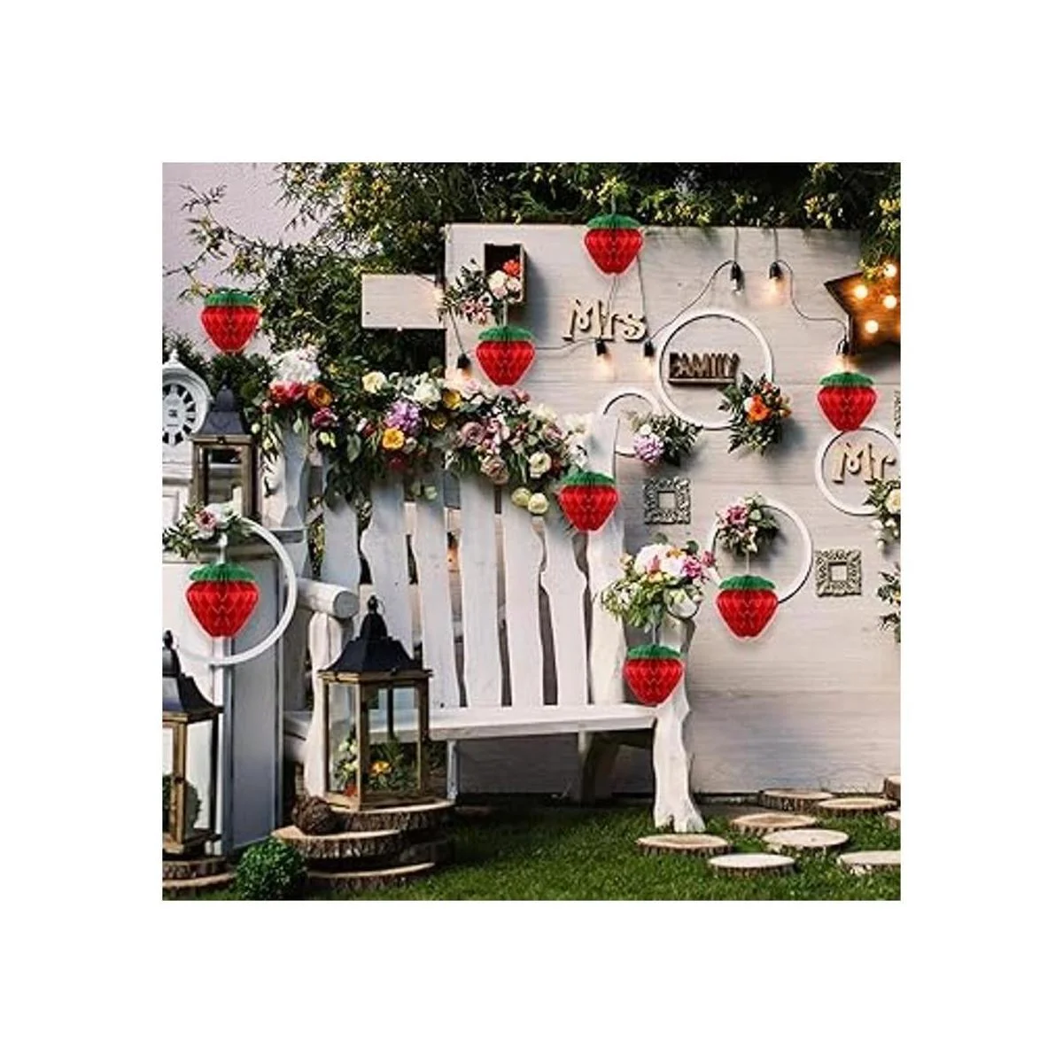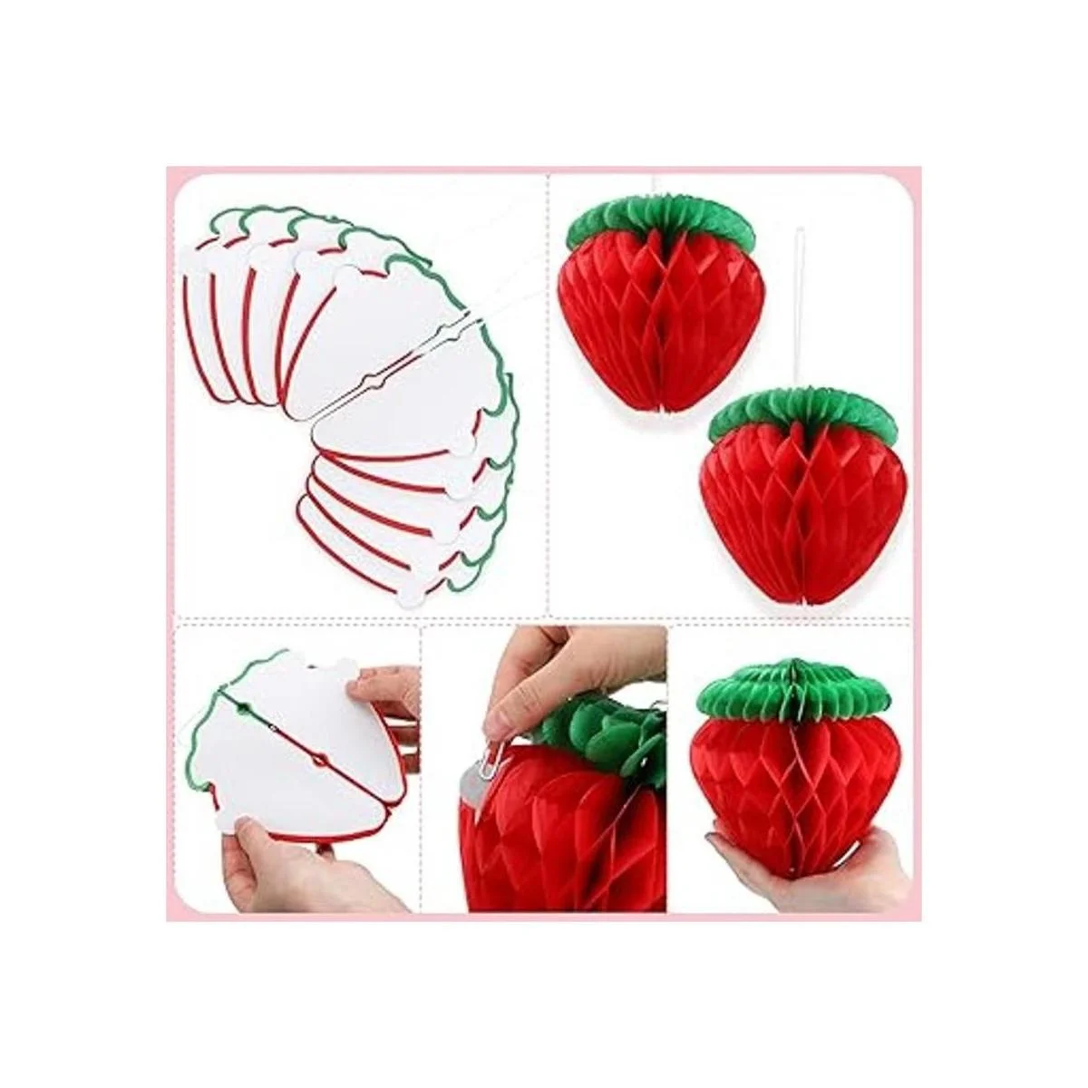 Skylety 10 bolas de papel de nido de abeja de fresa de 6 pulgadas para decoración de fiesta de cumpleaños de fresa rojo
