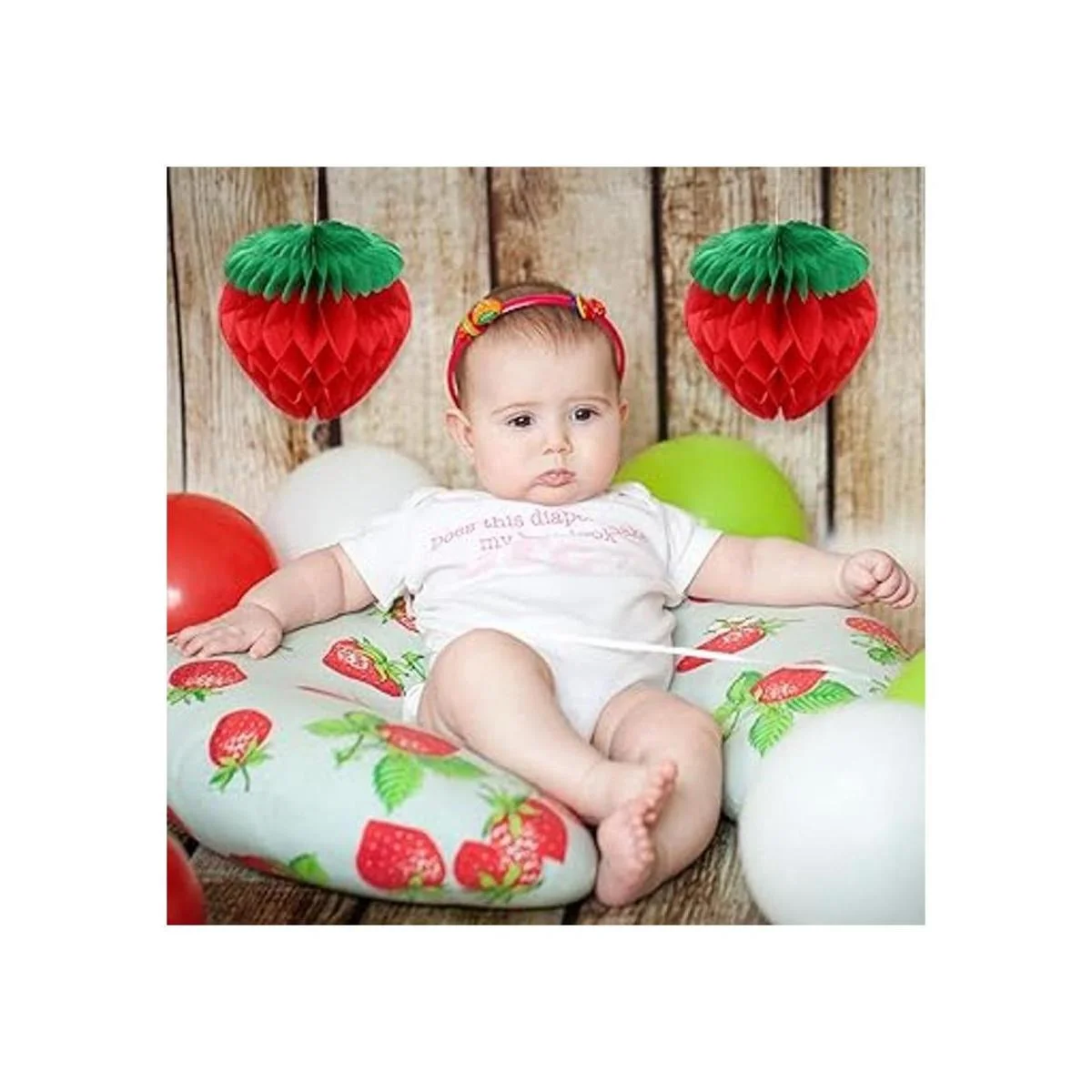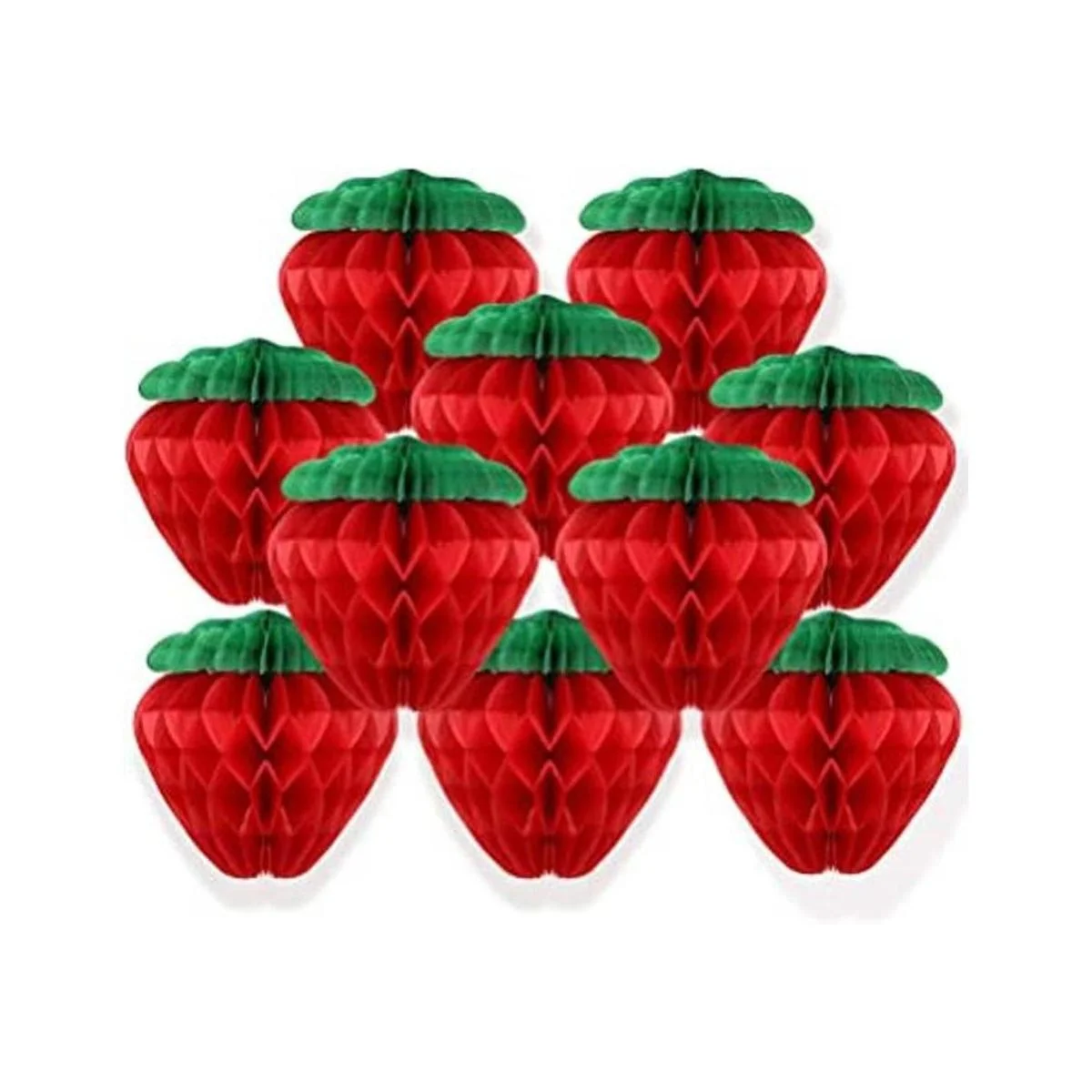 Juego de decoración para fiestas: recibirás 10 bolas de panal de fresa con hojas verdes, y miden aproximadamente 5.9 in de diámetro, cantidad suficiente y tamaño adecuado para decorar tu pieza