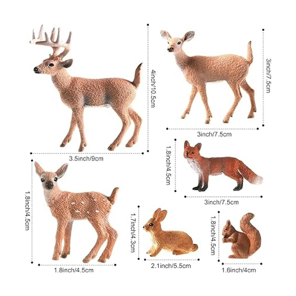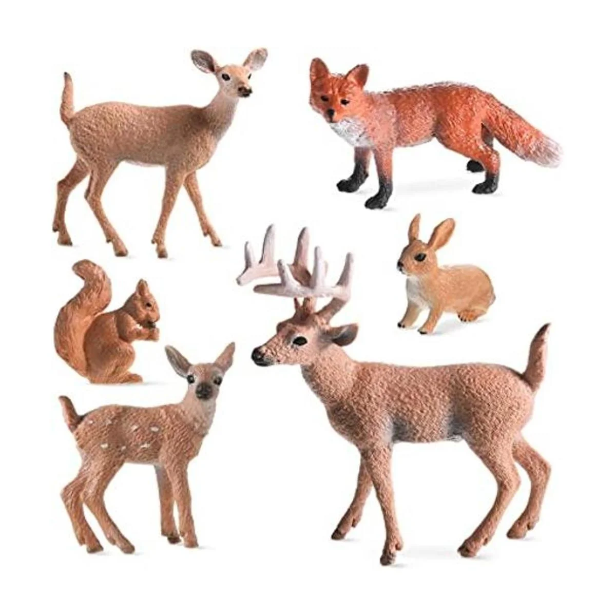 El paquete incluye: un minicuerco de 4.1 pulgadas de alto, un ciervo de 3 pulgadas de alto, un cervatillo de 1.8 pulgadas de alto, un conejo de 1.7 pulgadas de alto, una ardilla de 1.7 pulgadas de alto y un zorro de 1.7 pulgadas de alto. A los niños les gustaría tener una fiesta con diferentes variedades de figuras de animales de safari.