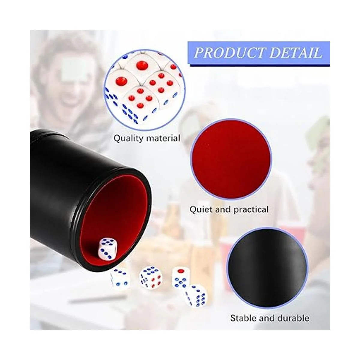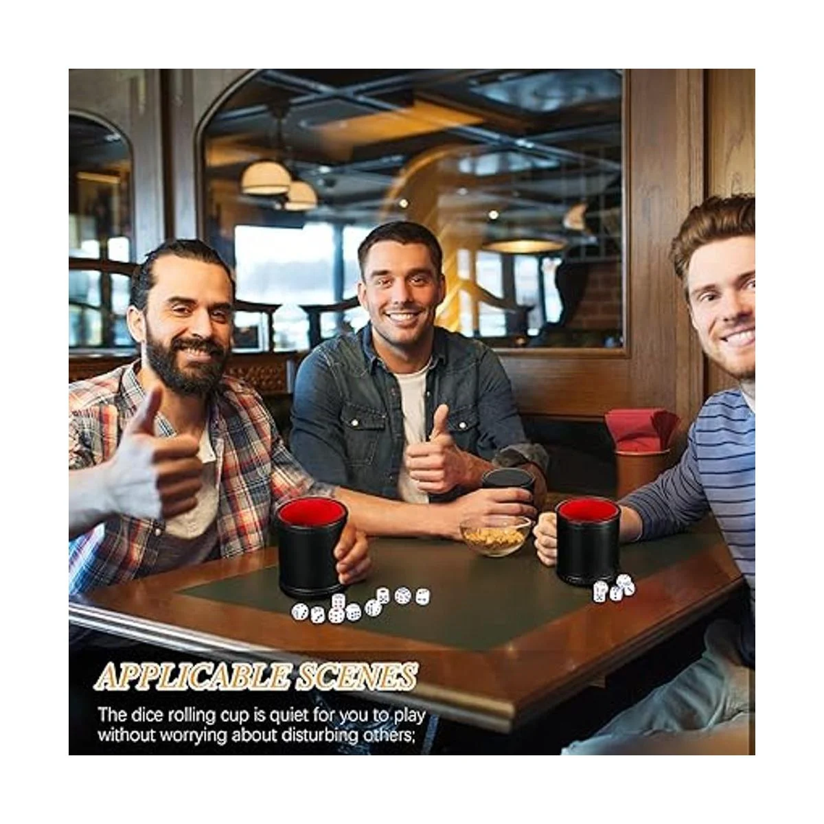 Escenas aplicables: la taza es silenciosa para que juegues sin preocuparte por molestar a los demás; puedes combinarla con tus amigos o familiares en el apartamento, patio, parque, parque infantil, etc. Es un buen regalo para aquellos a los que les gusta jugar juegos que requieren dados