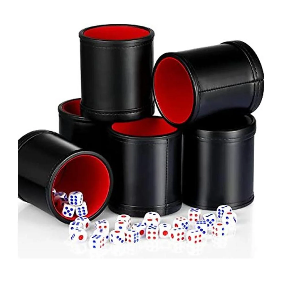 Skylety Juego de 6 tazas de dados de piel sintética, juego de tazas de dados de piel sintética, con forro de fieltro rojo, agitador silencioso con 30 dados para juego de dados Farkle