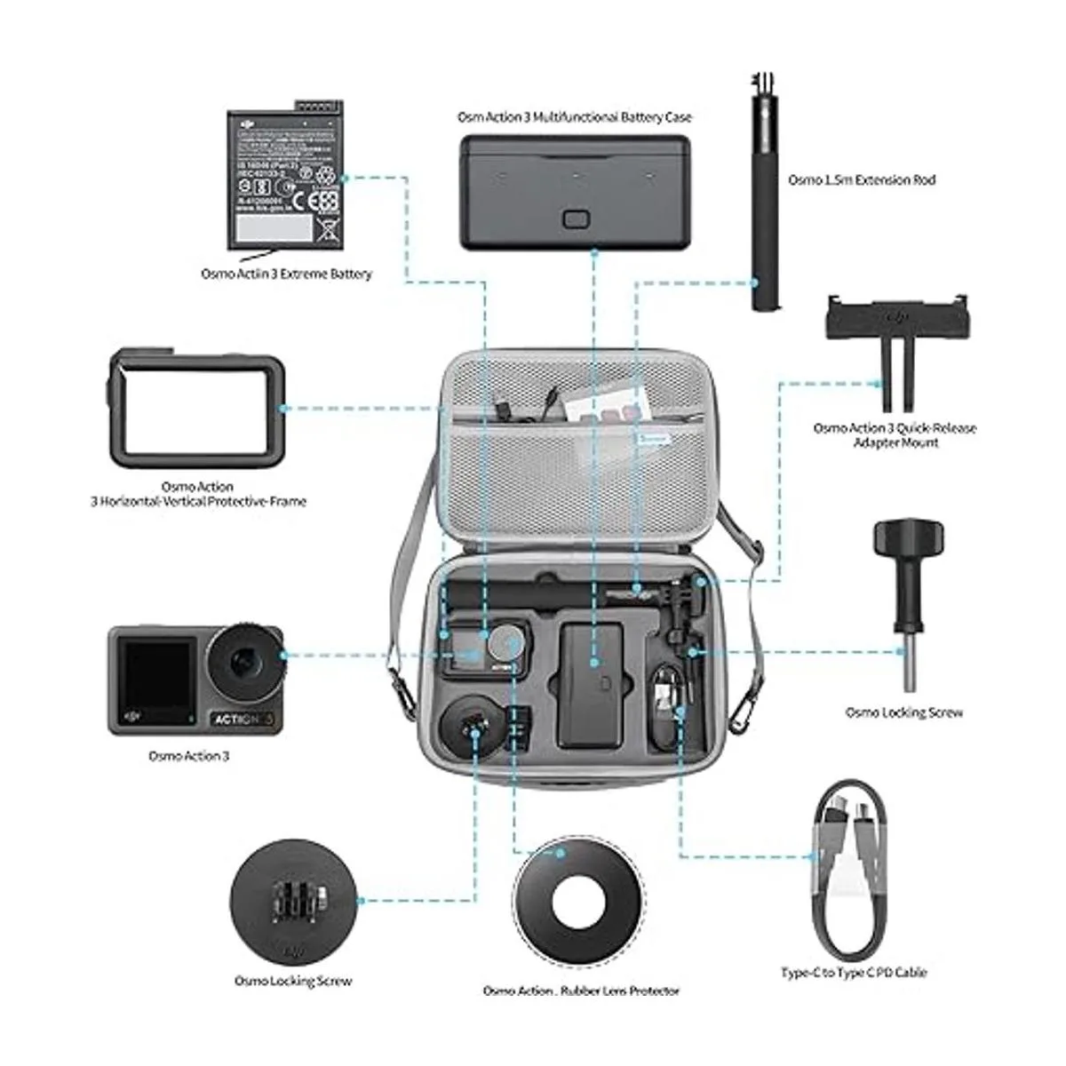 Personalizado especial Esta funda de transporte está especialmente diseñada para DJI Osmo Action 3 Adventure Combo, compatible con Osmo Action 3, Osmo Action 3 Extreme Battery, Osmo Action 3 HorizontalVertical Protective Frame, Osmo Action 3 Protector de lente de goma, Osmo Action 3 Soporte adaptador de liberación rápida, Osmo Flat Adhesive Base, Osmo Lock Screw, USBC a TypeC PD Cable, Osmo Action 3 Multifuncional Battery Case y Osmo Extensión de 4.9 ft Varilla.