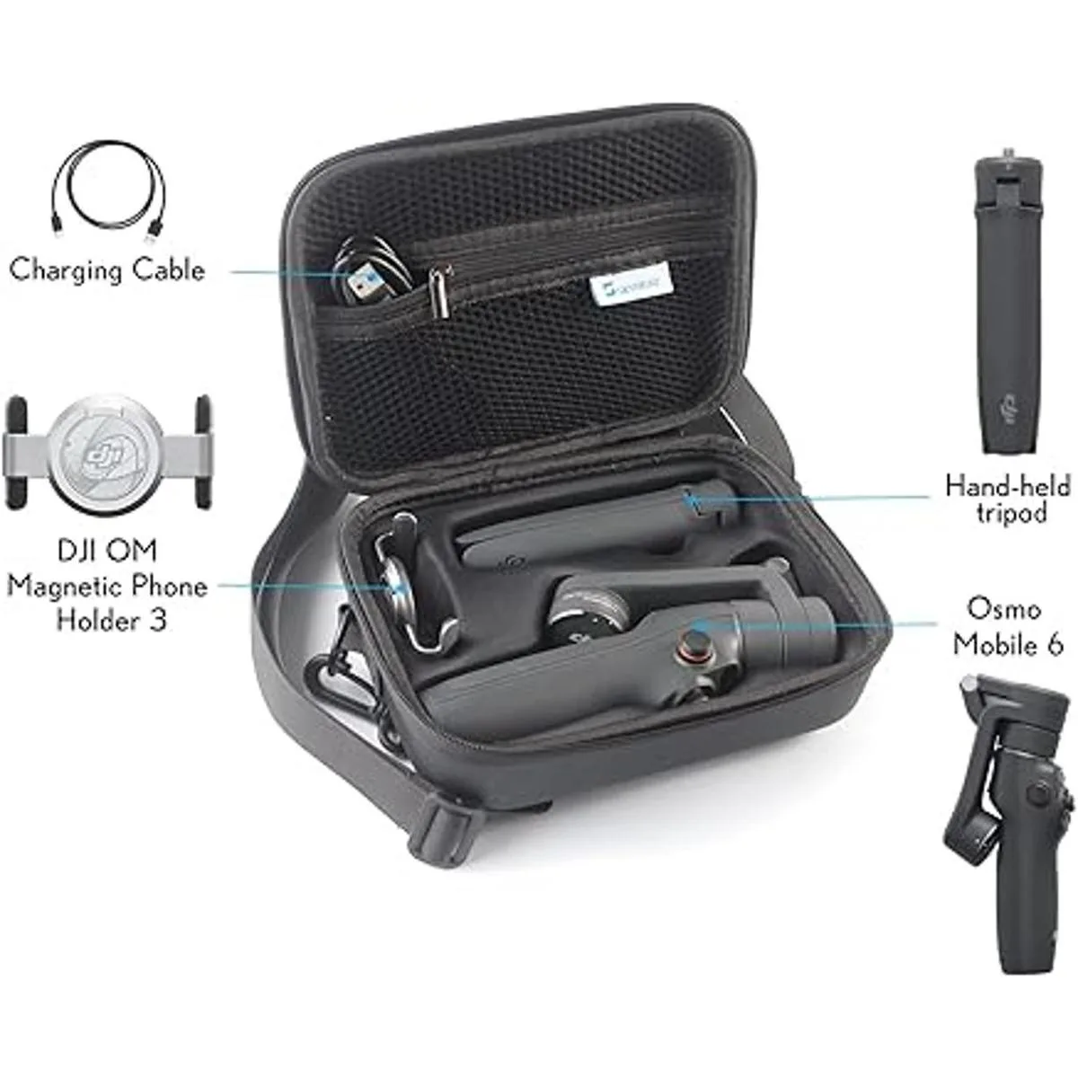 Diseño personalizado: cada espacio está diseñado para accesorios OM 6. Puede almacenar el estabilizador de cardán OM 6, abrazadera magnética DJI OM 3, trípode de agarre, cable de alimentación, bolsa de almacenamiento, correa de muñeca y otros accesorios.
