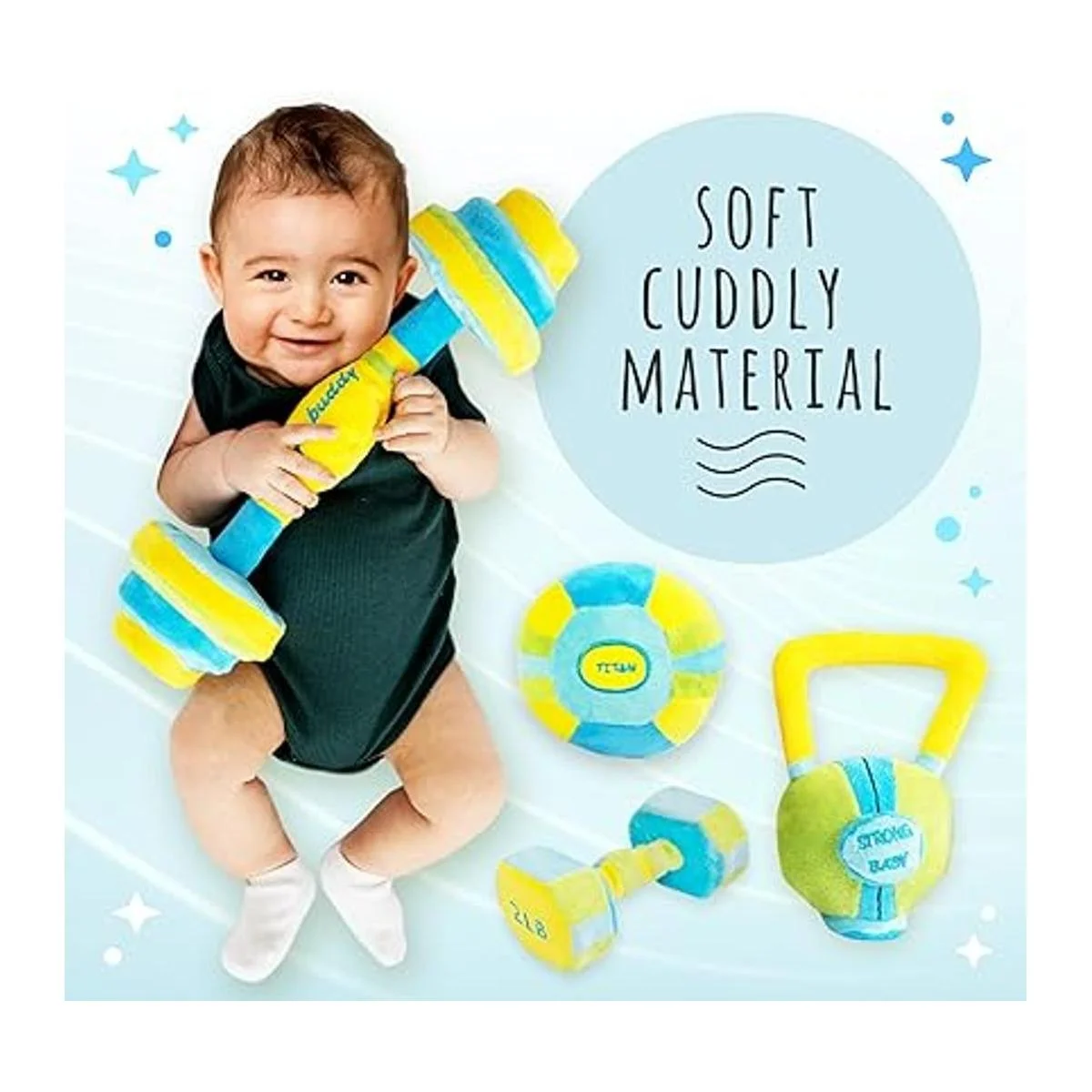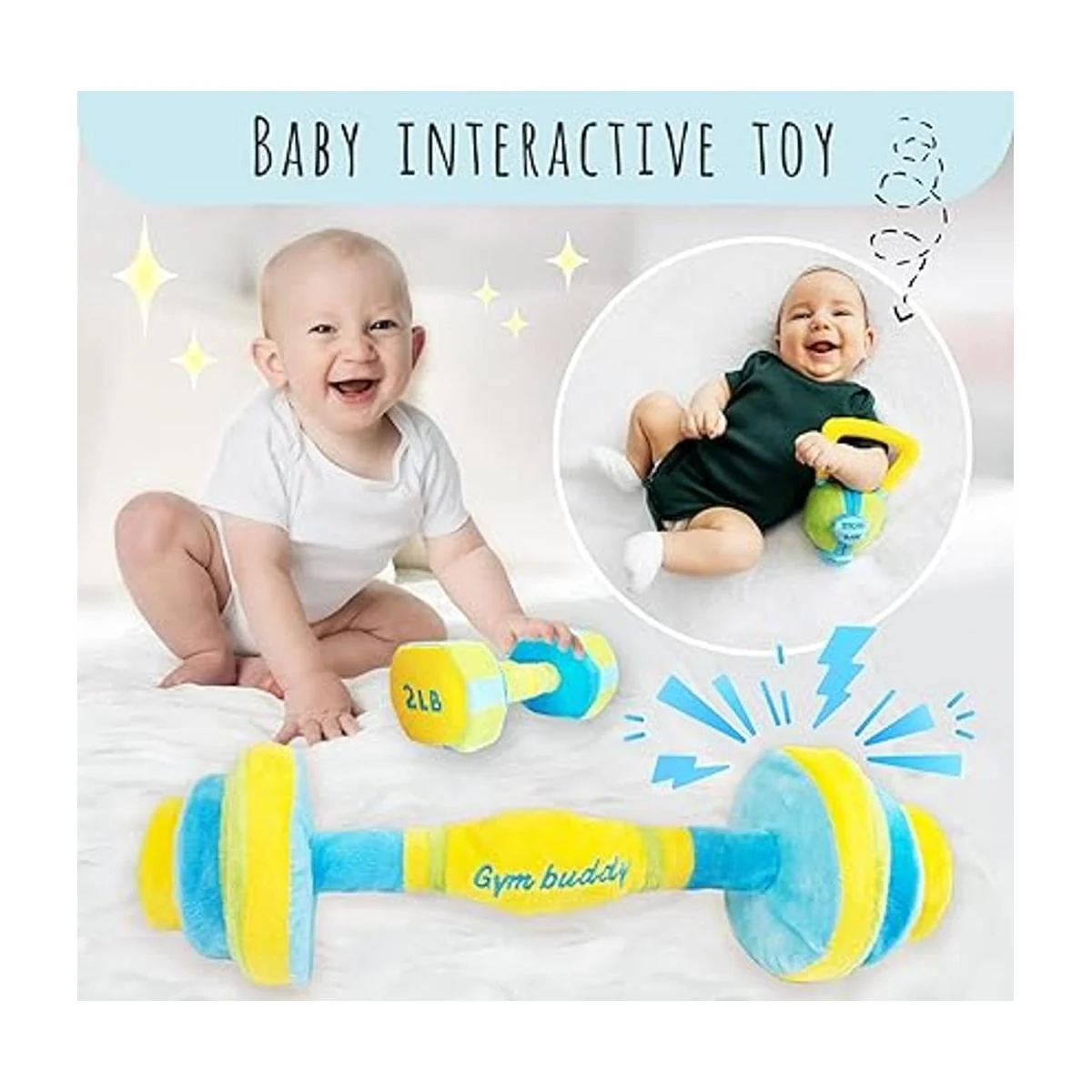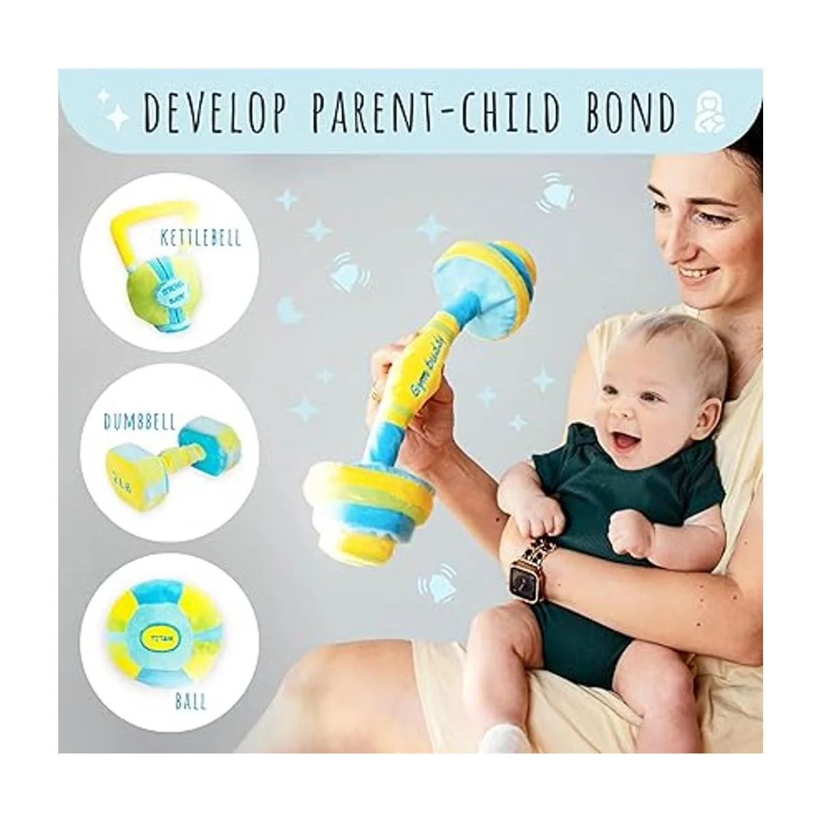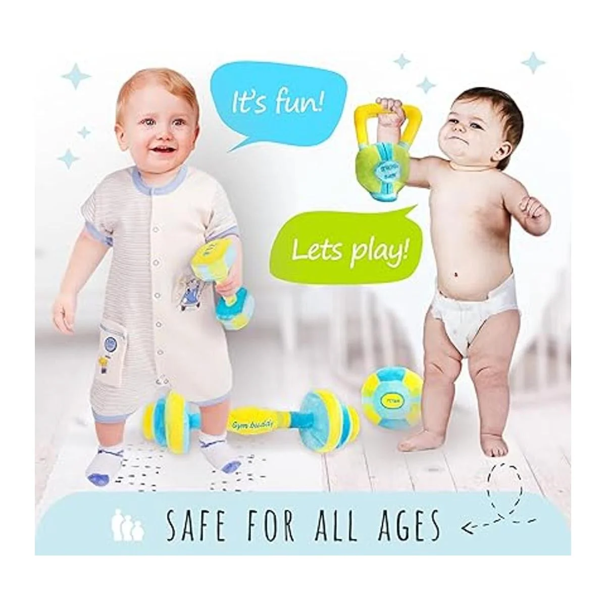 Mini peluche de entrenamiento: viene con mancuernas de juguete, pesa rusa y bola medicinal en tricolor.