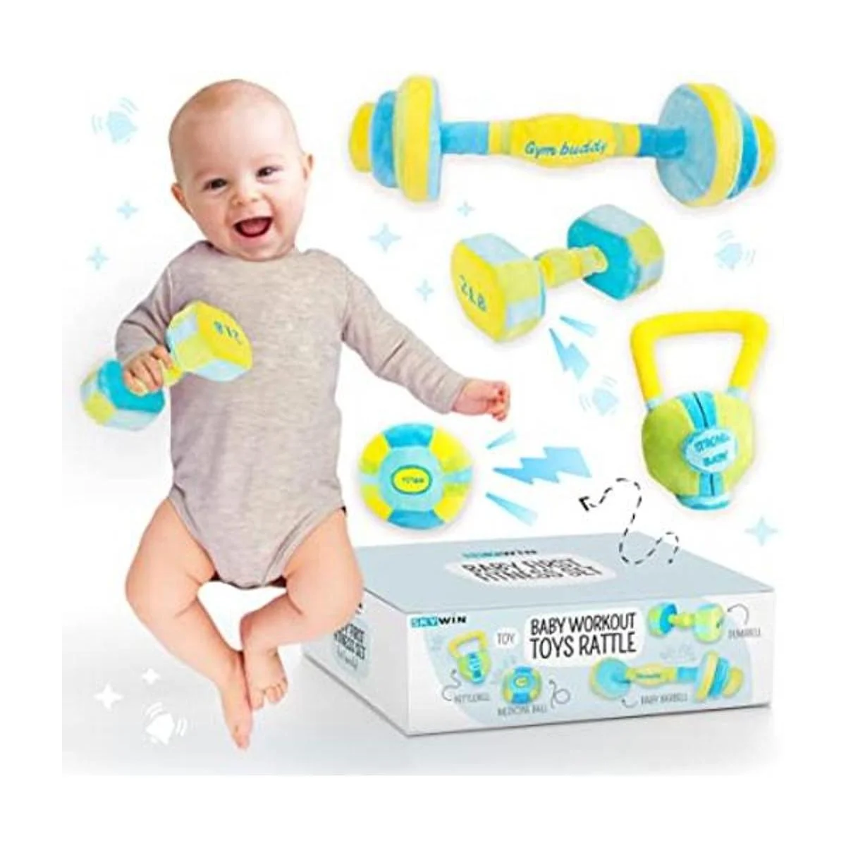 Skywin Juguetes de entrenamiento para bebé, juego de 4 juguetes de sonajero de felpa suaves, duraderos y seguros para niños a partir de 0 años