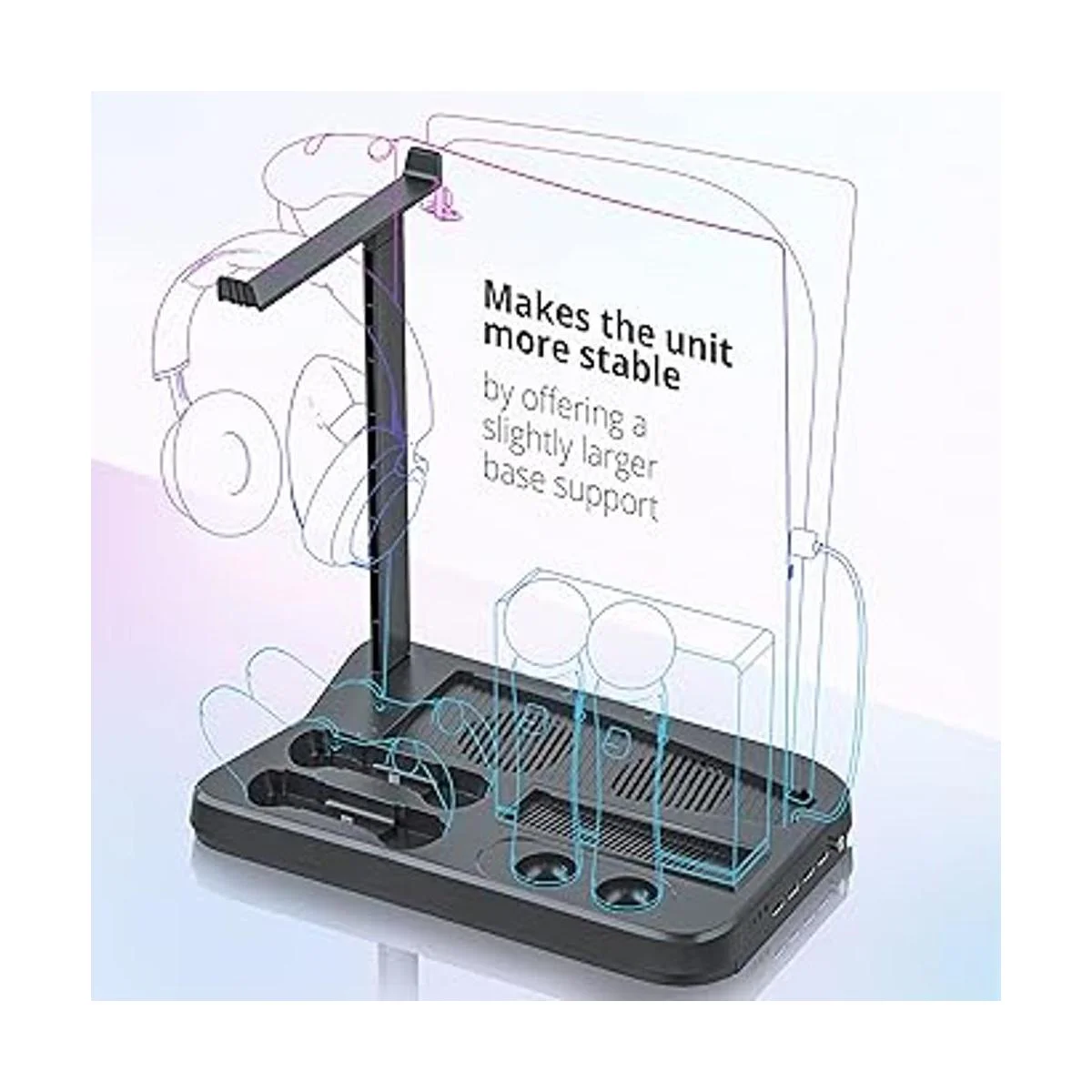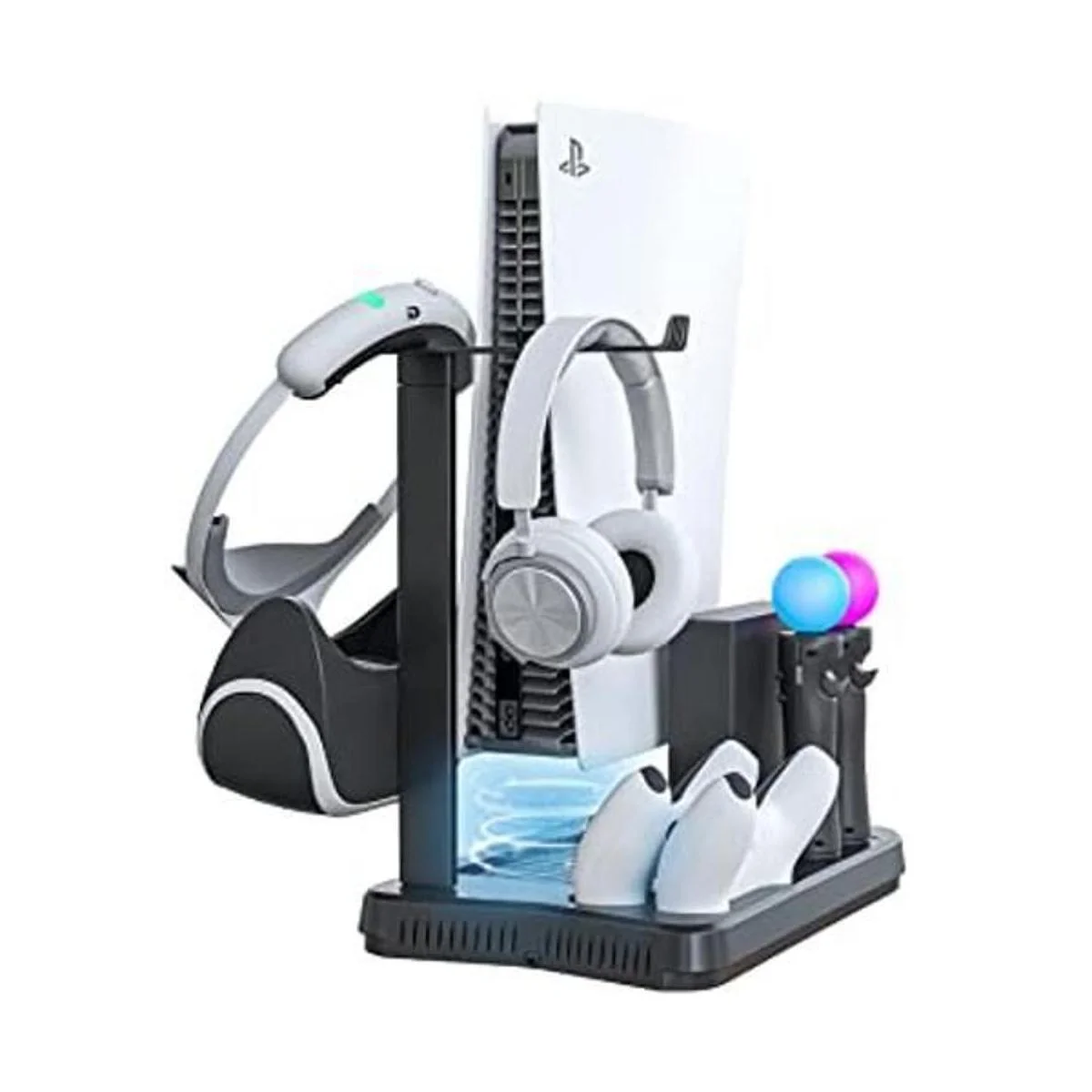 Skywin PSVR Soporte de pantalla de carga Escaparate, fresco, carga y muestra tu PS VR Compatible con Playstation. Soporte para auriculares PS5, ventilador, cargador de controlador y hub PS5 VR