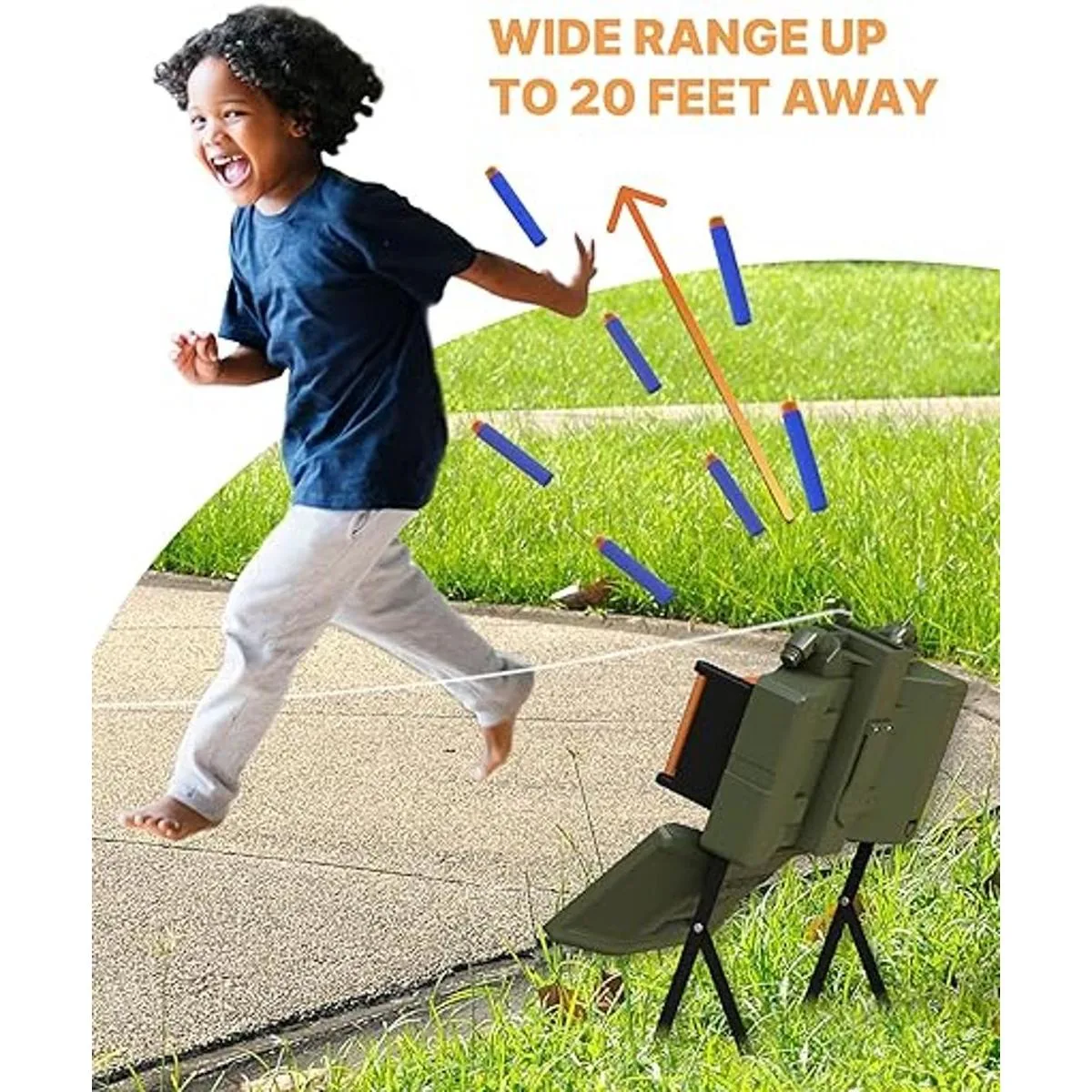 Amplia gama: lanza 100 cuentas de hasta 20 pies de distancia. Ajusta las patas de metal para una trayectoria perfecta.
