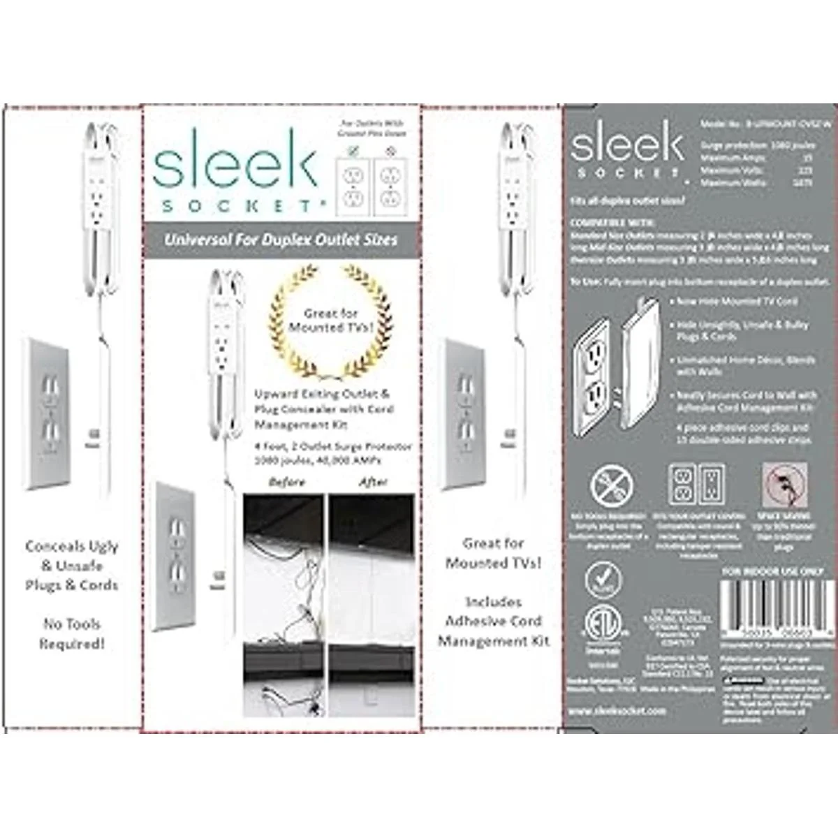 Sleek Socket para TV montada, corrector de salida ultrafino con kit corrector de cables, regleta de alimentación de 3 tomas, cable de 8 pies, tamaño universal