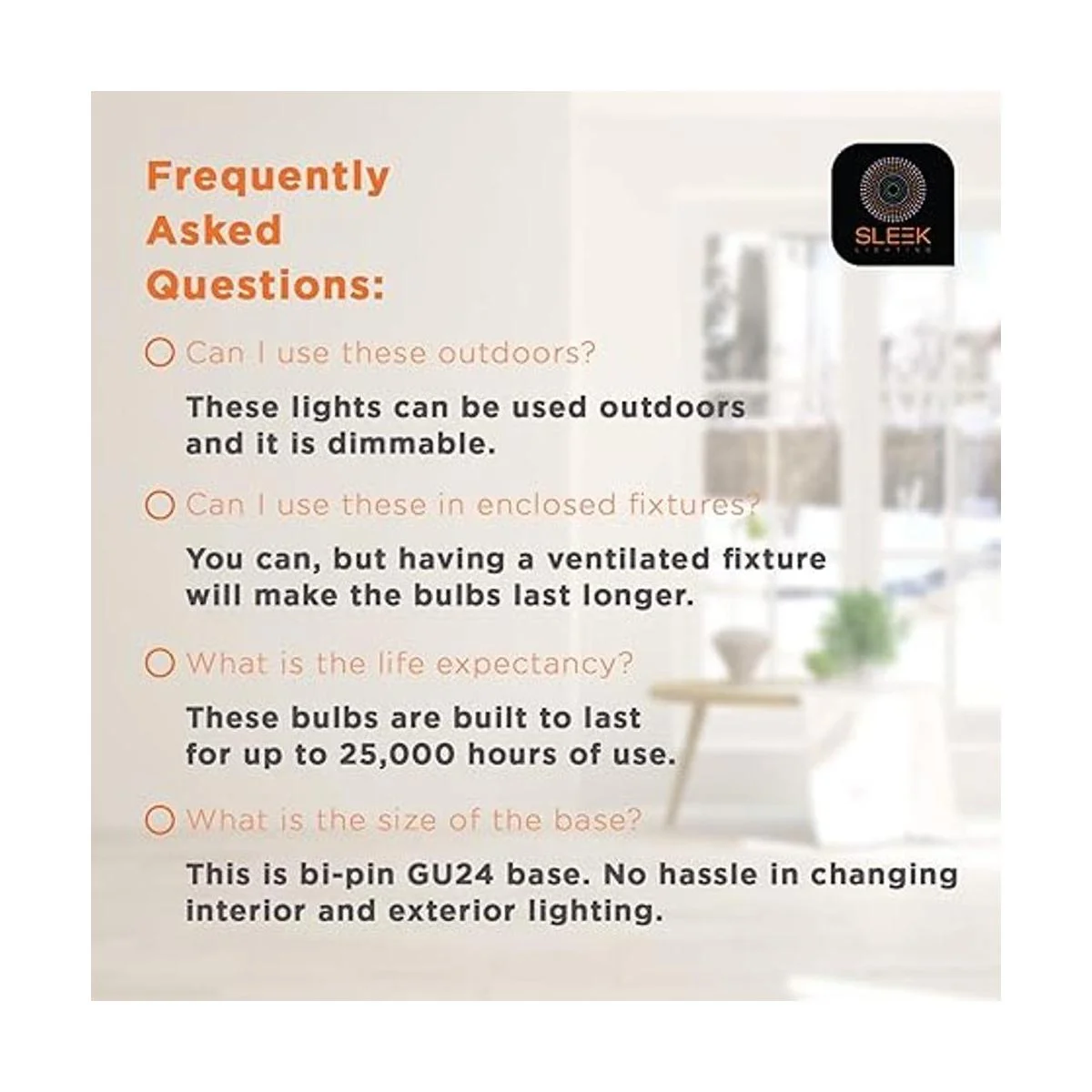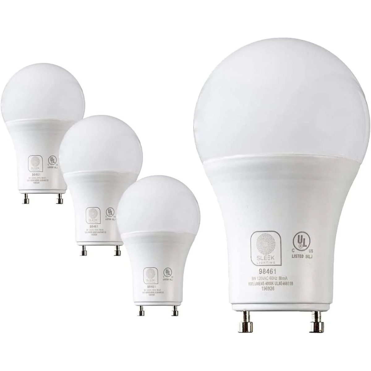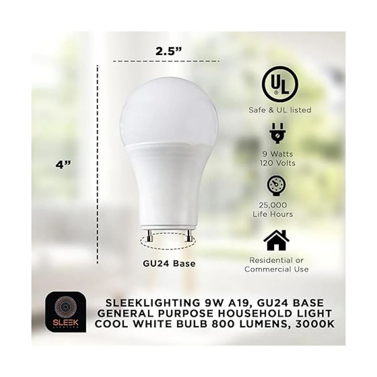 SleekLighting 9 W A19, base GU24, bombilla regulable de uso general para el hogar, 3000 K, blanco cálido 800 lm, 240 grados, certificación UL, paquete de 4