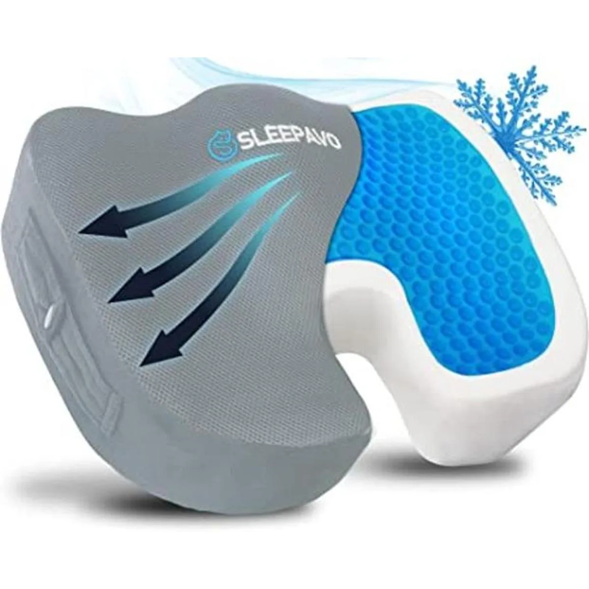 Ayuda a aliviar la ciática y el dolor de espalda baja: la almohada de coxis de Sleepavo ha sido diseñada ergonómicamente para ayudar a eliminar la presión de la parte inferior de la espalda o el coxis del usuario y ofrece alivio ortopédico del dolor de coxis mientras estás sentado. Este cojín de gel promueve una postura saludable y una alineación adecuada de la columna vertebral.