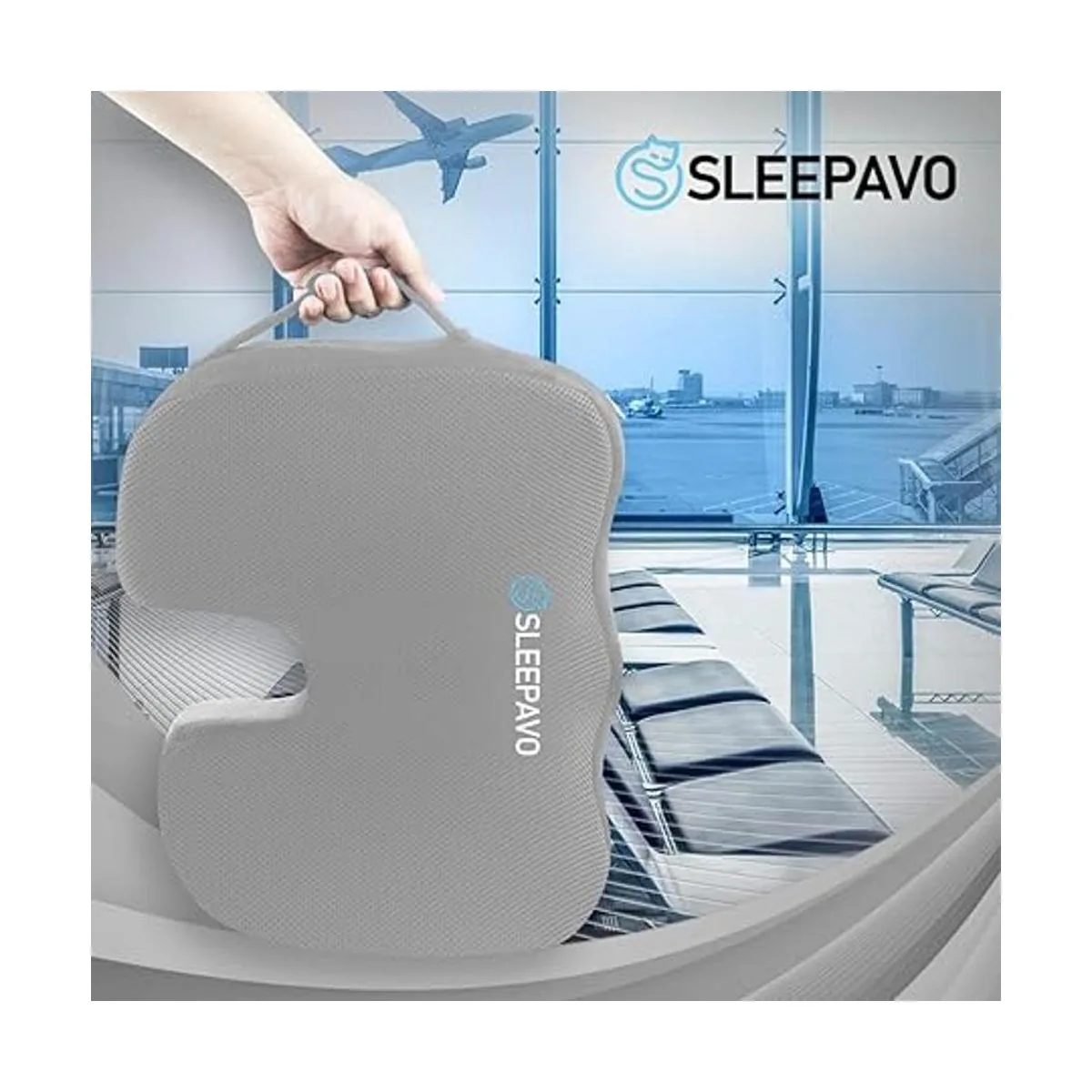 Sleepavo Cojín de asiento de espuma viscoelástica gris para silla de oficina, almohada de gel refrescante para ciática, coxis, espalda, coxis y alivio del dolor de espalda, almohadilla de silla para soporte lumbar en escritorio de oficina, automóvil y avión