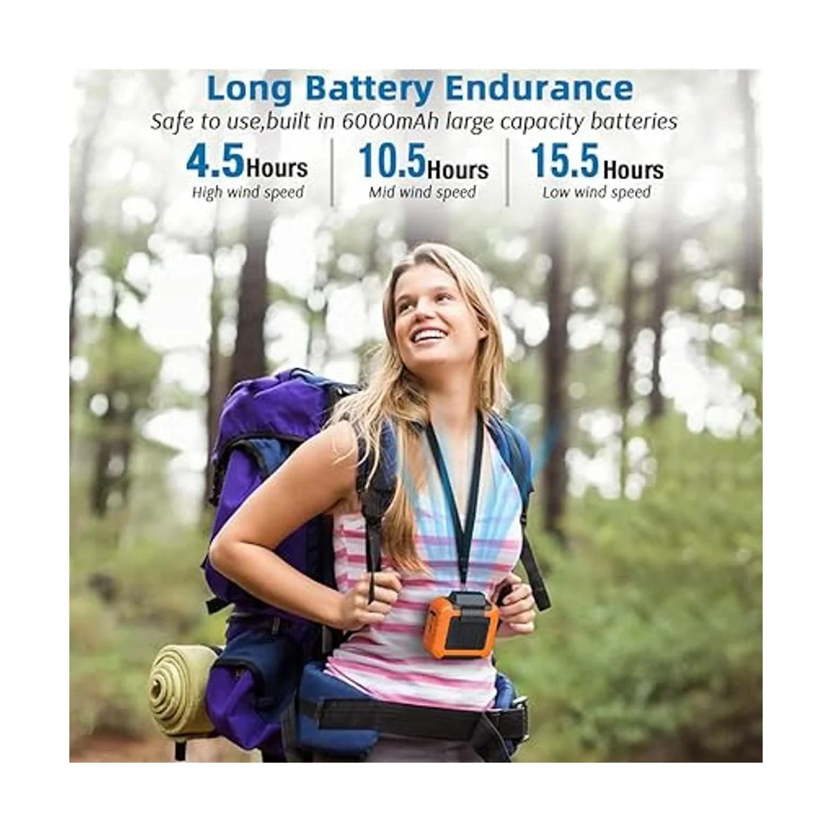 Largo tiempo de trabajo Construido con batería de polímero de gran capacidad de 6000 mAh, el ventilador de cintura portátil soporta hasta 15.5 horas. Alta velocidad 4.5 H, velocidad media 10.5 H, baja alta 15.5 horas.