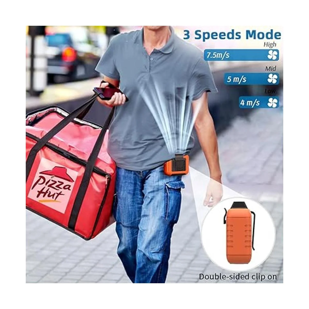 SLENPET Ventilador portátil con clip de cintura de 6000 mAh con tiempo de trabajo de 23 horas, flujo de aire fuerte de 6200 RPM, 3 velocidades, ventilador personal recargable funciona con pilas, ventilador de cinturón USB manos libres para ropa, camisa, granja, trabajo, senderismo