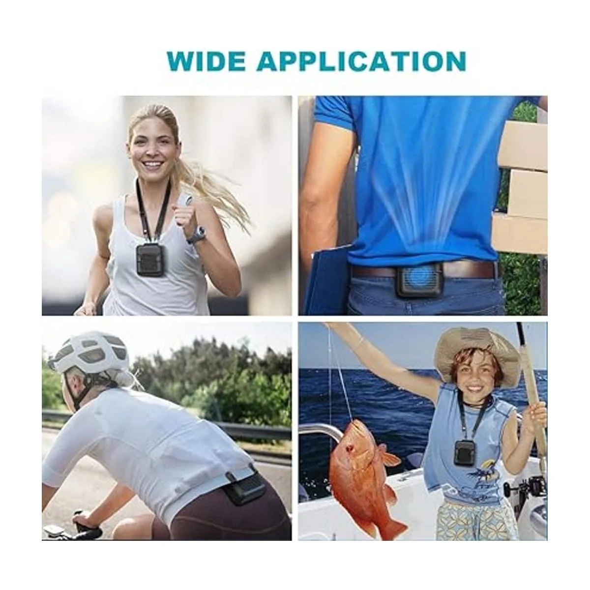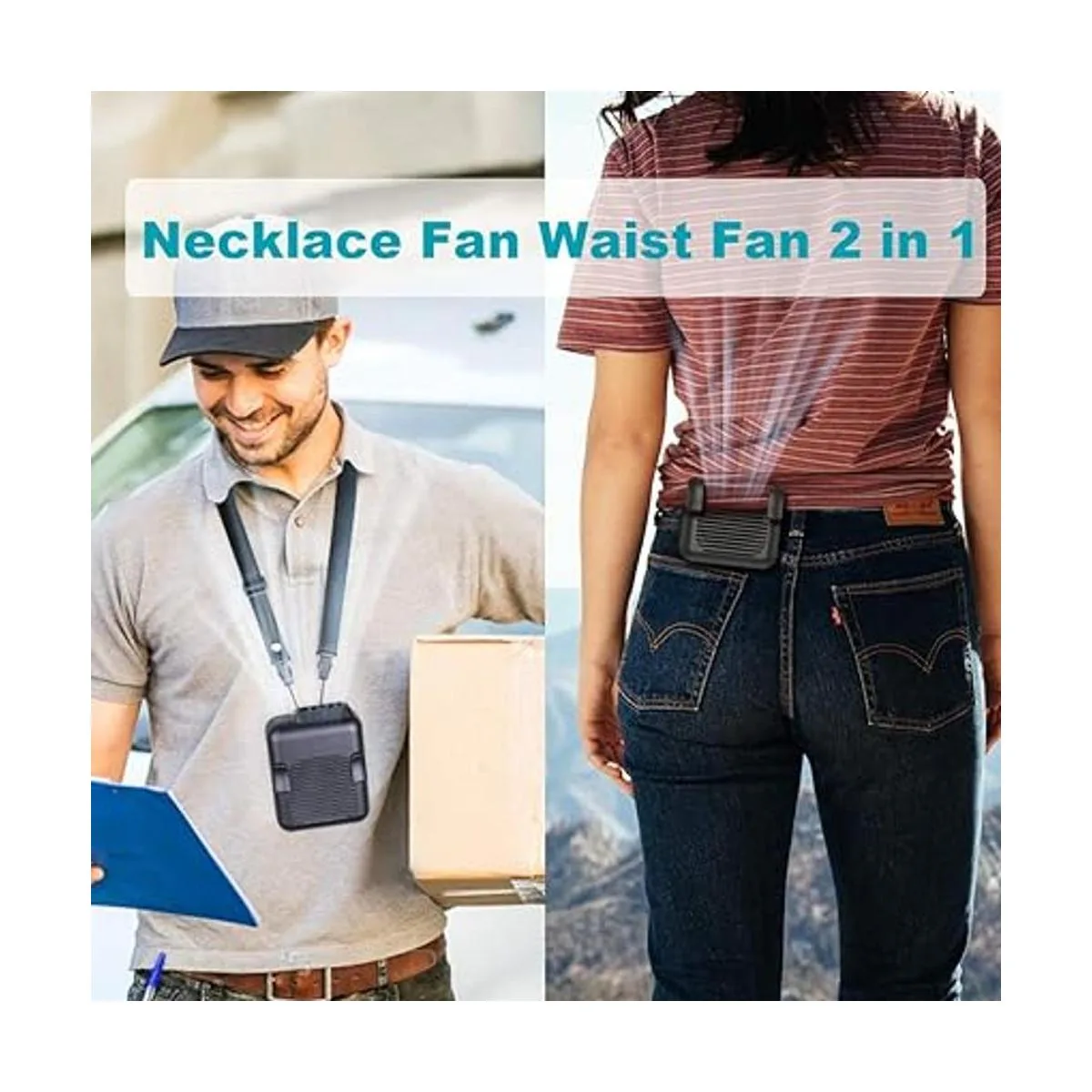 Ventilador de cintura y ventilador de collar 2 en 1: puedes enganchar el ventilador personal en tu cintura, el viento soplará dentro de la ropa, enfriando tu cuerpo rápidamente. El ventilador tiene una correa adicional para collar, puedes colgar el ventilador en tu pecho como un ventilador de collar.