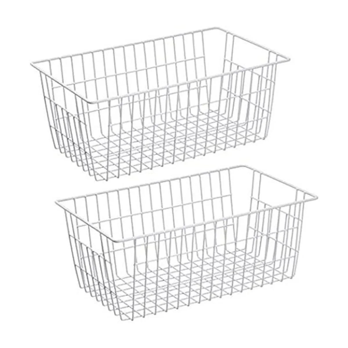 Cestas de granja paquete de 2, blancas: contenedores de almacenamiento de inspiración rústica con marco de estilo alambre, perfectos para organizar artículos del hogar.