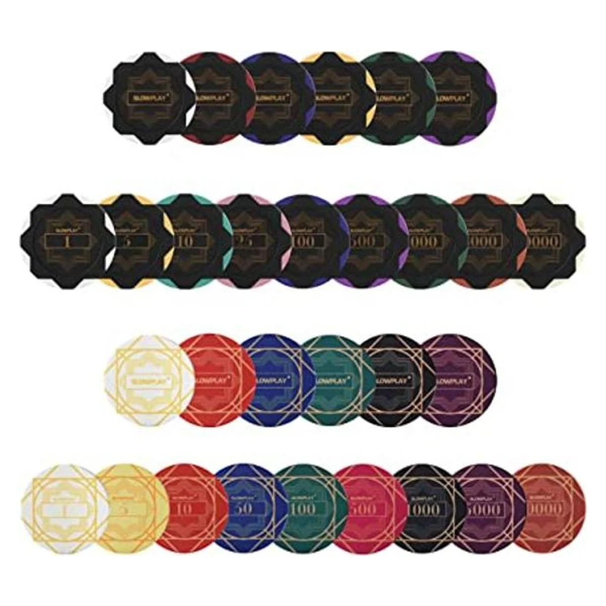 SLOWPLAY Juego de muestras de fichas de póquer Chips de póquer de arcilla Nash y fichas de póquer de cerámica, fichas numeradas, fichas en blanco, 50 unidades por paquete