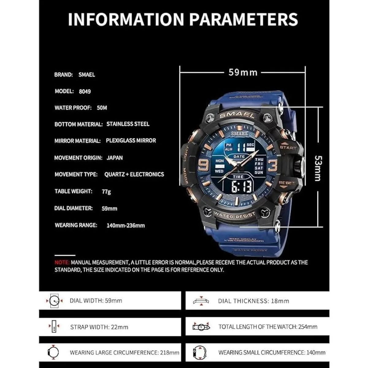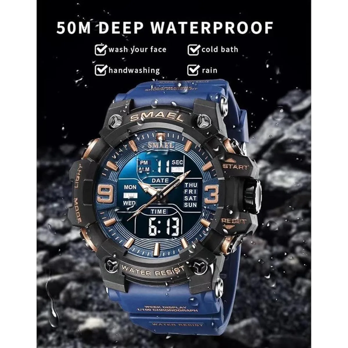 SMAEL Relojes militares para hombre, reloj digital para deportes al aire libre, impermeable, LED, fecha, alarma para hombres