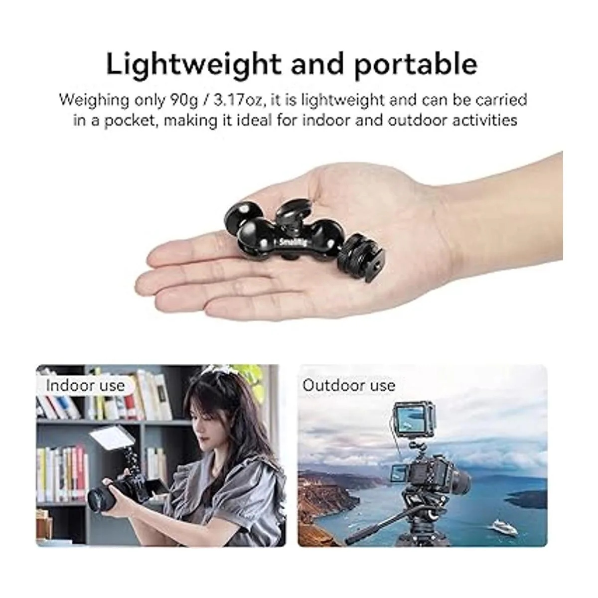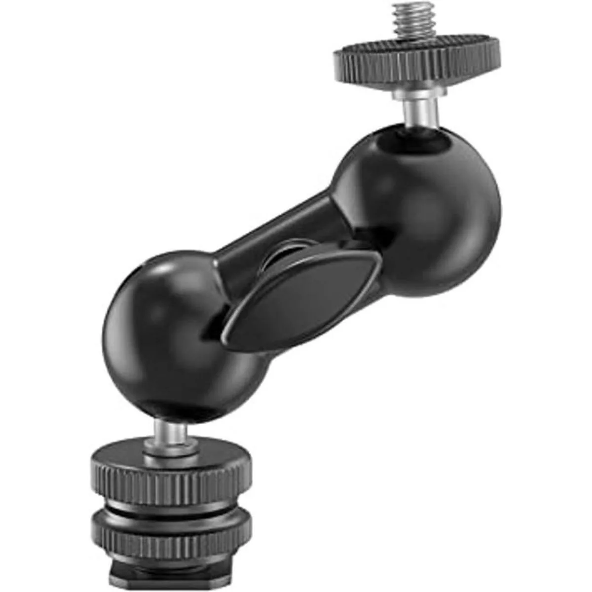 Amplia aplicación: una cabeza de bola doble universal con zapata fría y tornillo de 1/4 pulgadas en ambos extremos, y se puede utilizar ampliamente con un monitor, cámara de acción pequeña, luces LED, micrófonos, flash al disparar