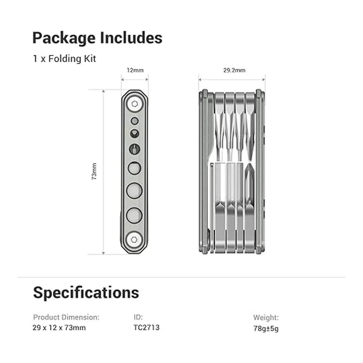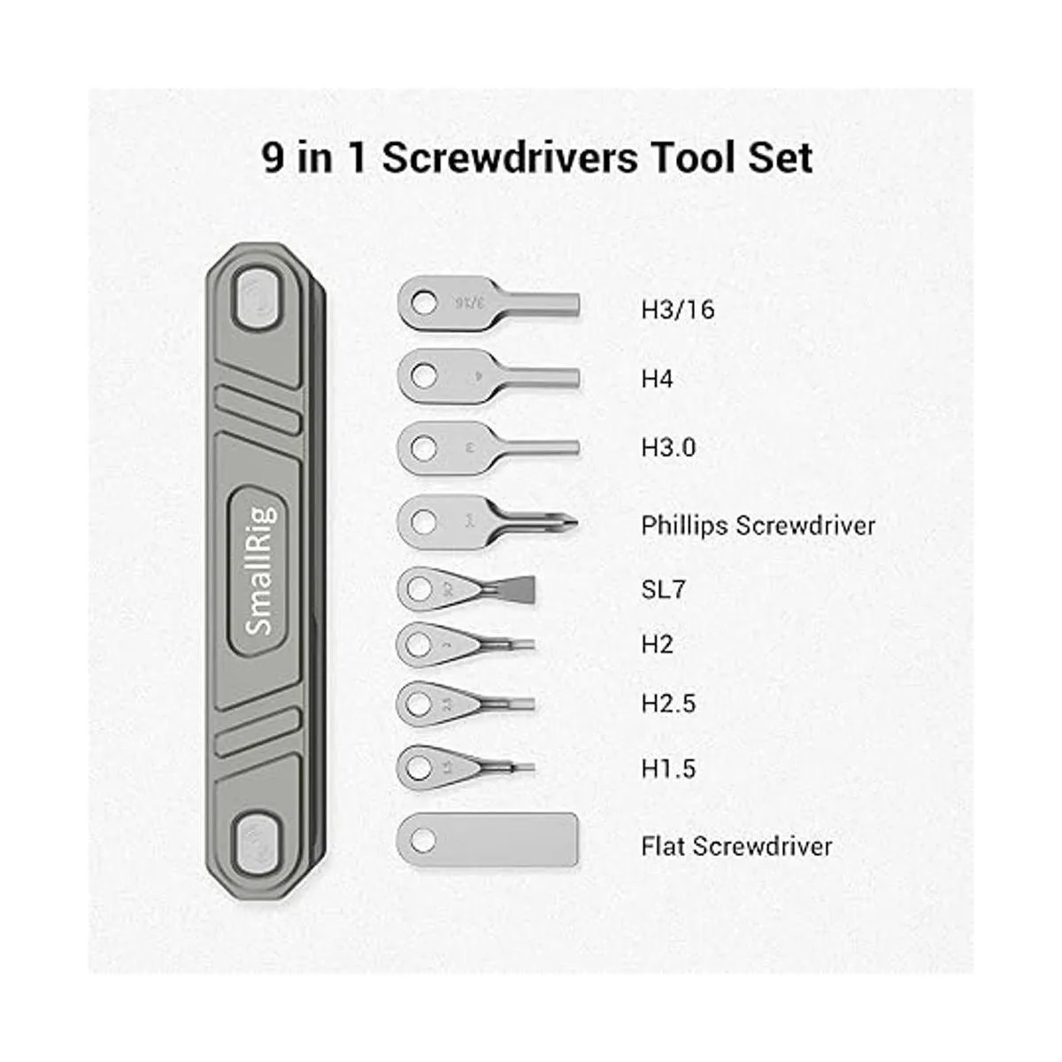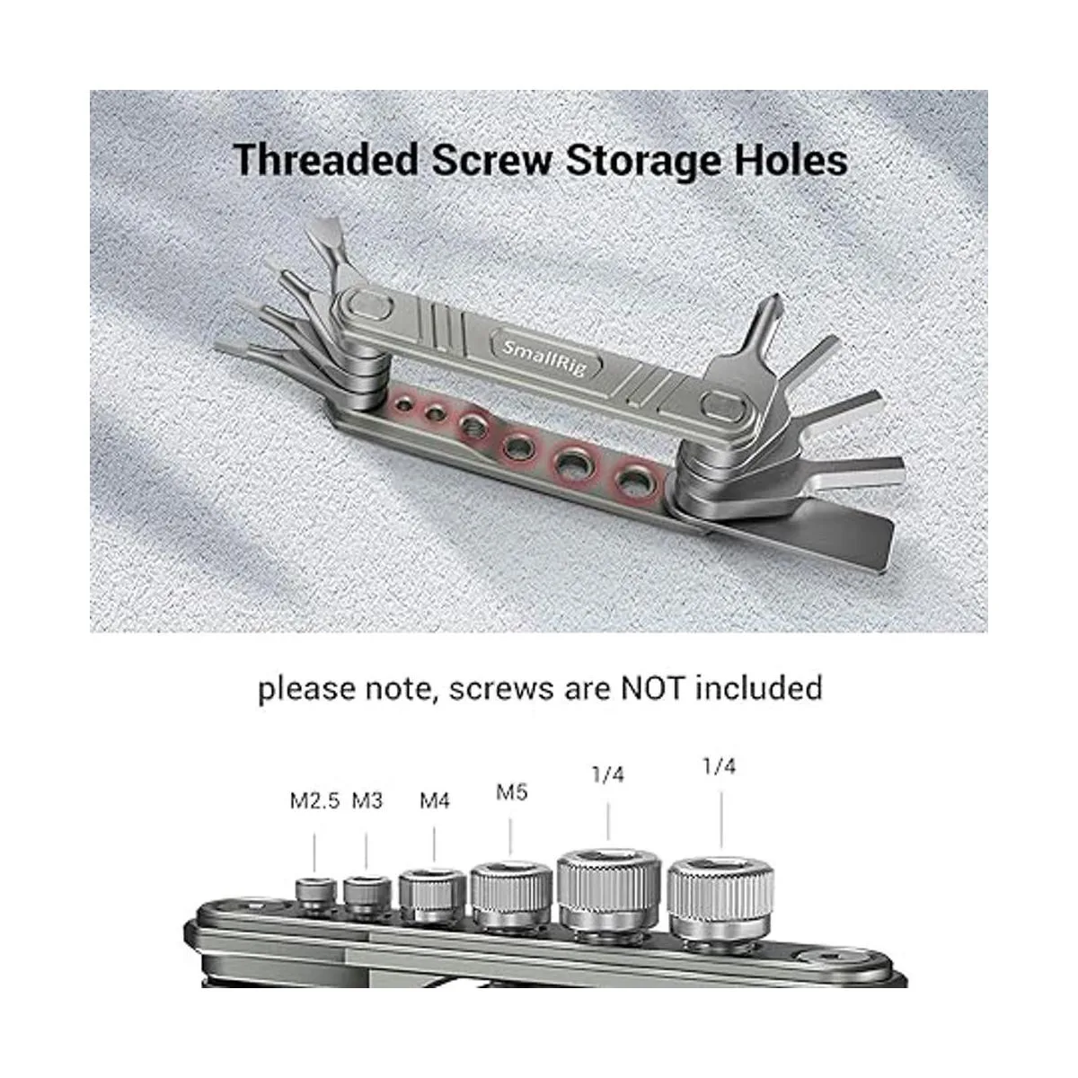 Kit multifunción 9 en 1: la herramienta plegable universal SmallRig TC2713 consta de un destornillador ancho y estrecho de cabeza plana, un destornillador Phillips PH1 y llaves Allen H1.5, H2.0, H2.5, H3.0, H4.0, 3/16.