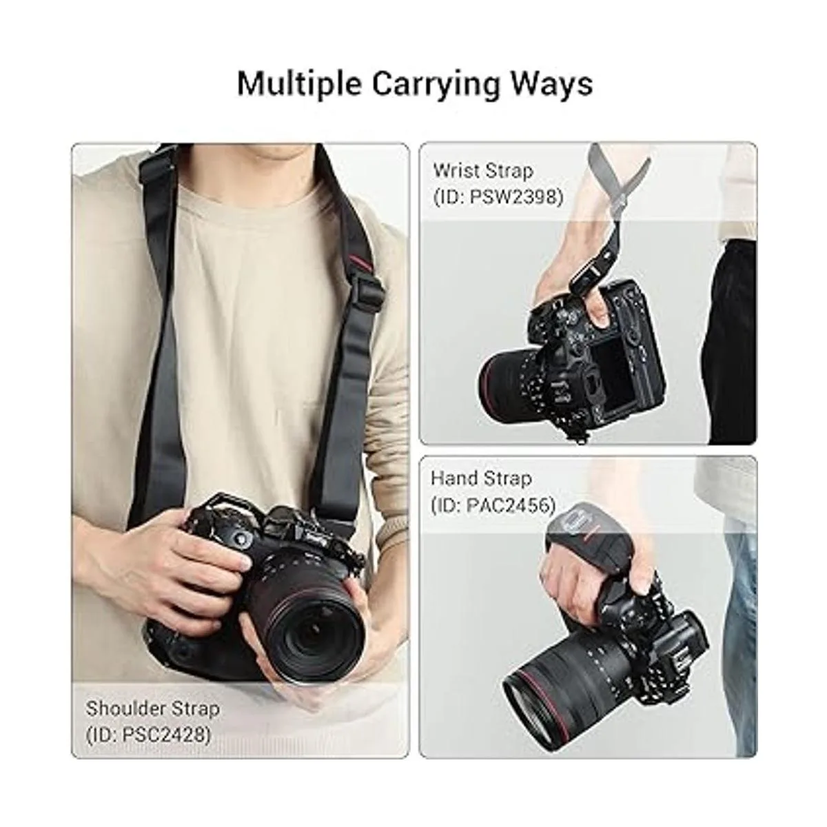Estable y antideflexión: la jaula R5 R6 R5 C está asegurada por un tornillo en la parte inferior y ranuras de la correa de hombro en ambos lados, lo que la hace estable y no deflectiva, y cuenta con cojines interiores de silicona para proteger la cámara contra arañazos.