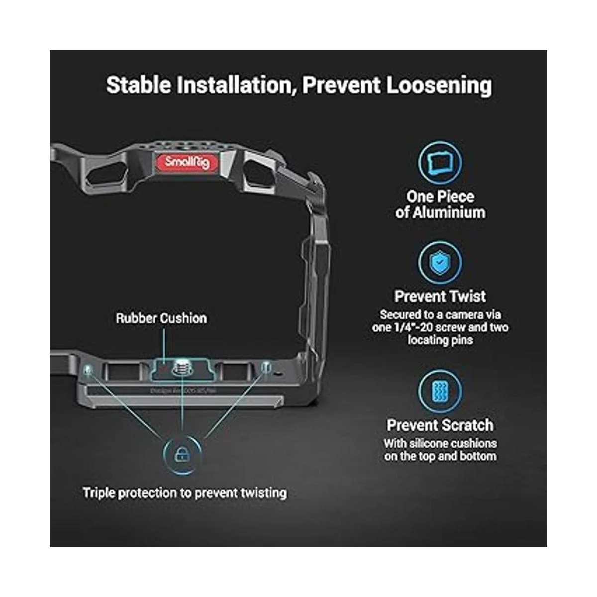 Jaula de cámara compacta SmallRig 2982B proporciona protección para la cámara Canon R5 R6 R5 C con una amplia gama de puntos de montaje de accesorios para hacer un trabajo cómodo de videografía. Se asegura a una cámara a través de un tornillo de 1/420 y dos pasadores de localización con cojines de silicona en la parte superior e inferior para evitar arañazos