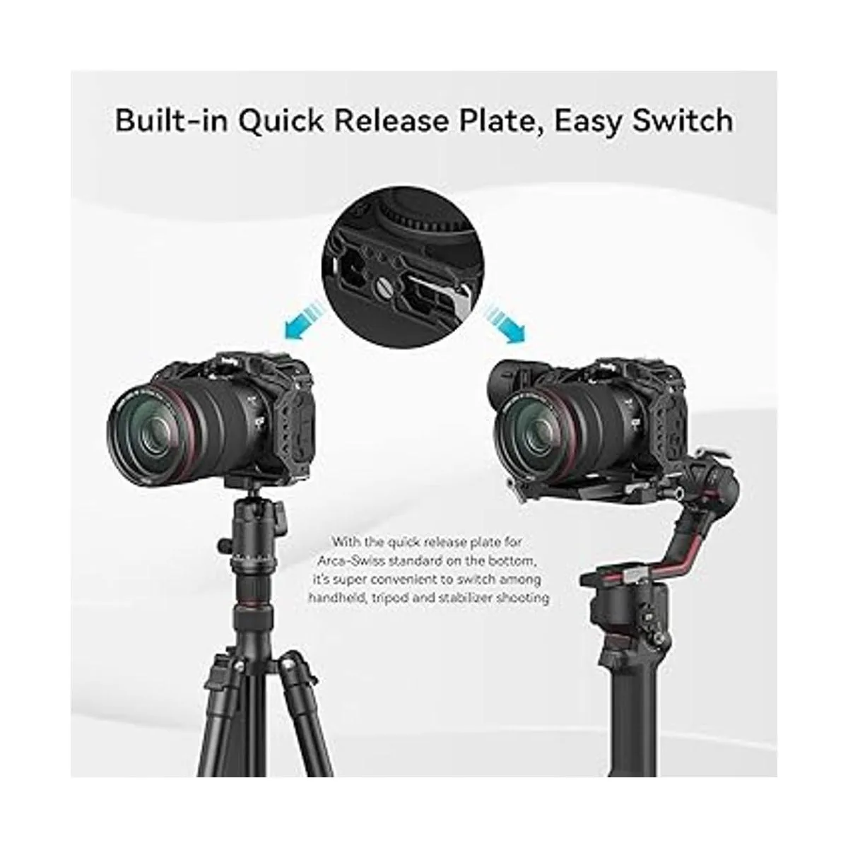 Diseño de interruptor rápido: placa de liberación rápida integrada para Arca en la parte inferior es compatible con RS 2 / RSC 2 / RS 3 / RS 3 Pro, lo que permite un interruptor rápido entre disparos de mano, estabilizador y trípode