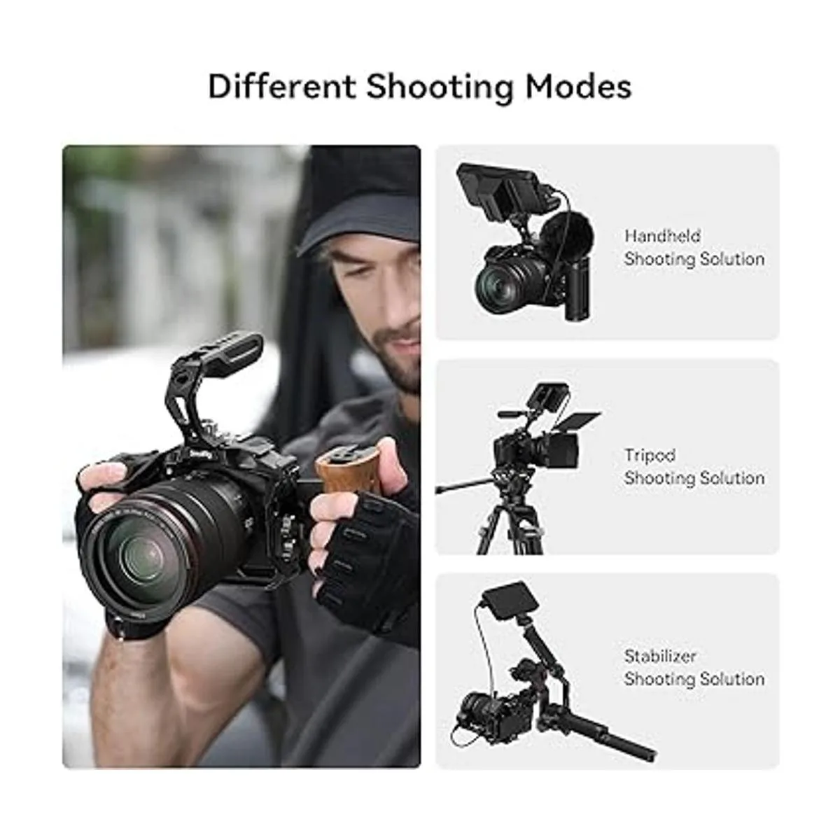 Jaula dedicada: la jaula SmallRig R7 4003 es una jaula de aluminio biónicamente diseñada, aerodinámica y ajustada que protege el cuerpo de tu cámara. Mantiene el acceso completo a los controles superiores de la cámara.