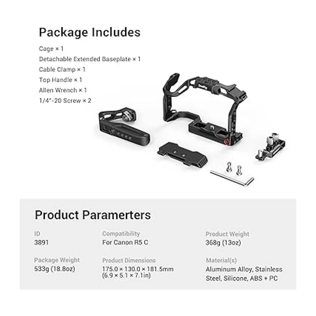 SmallRig Kit de mano de jaula de cámara R5C para Canon R5 C con mango superior, jaula completa, abrazadera de cable HDMI y USBC3891
