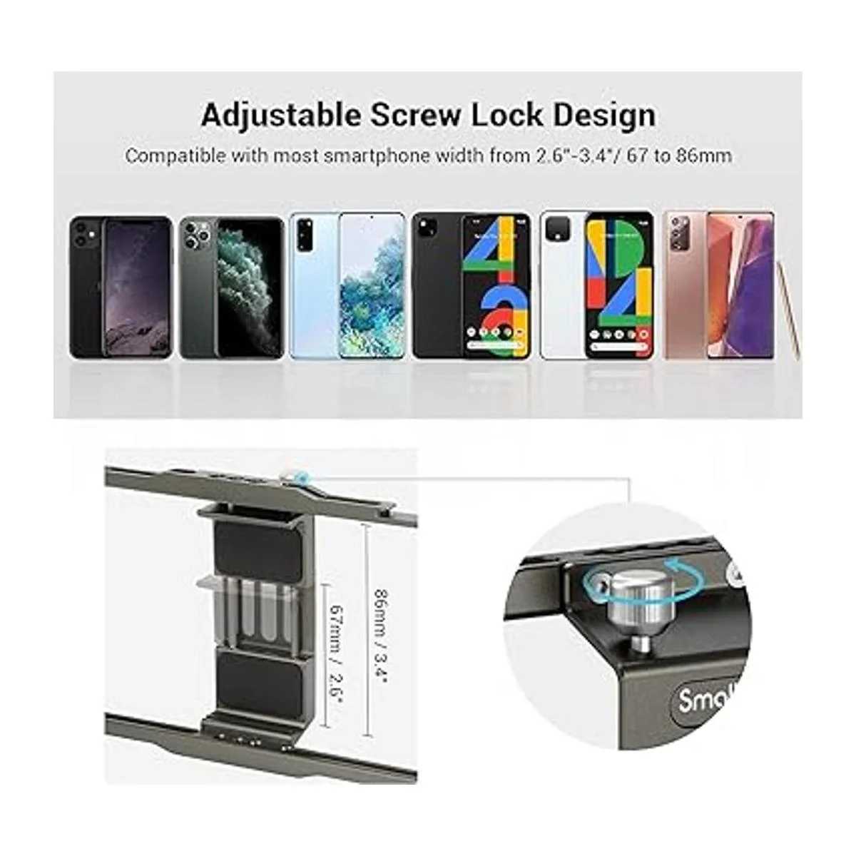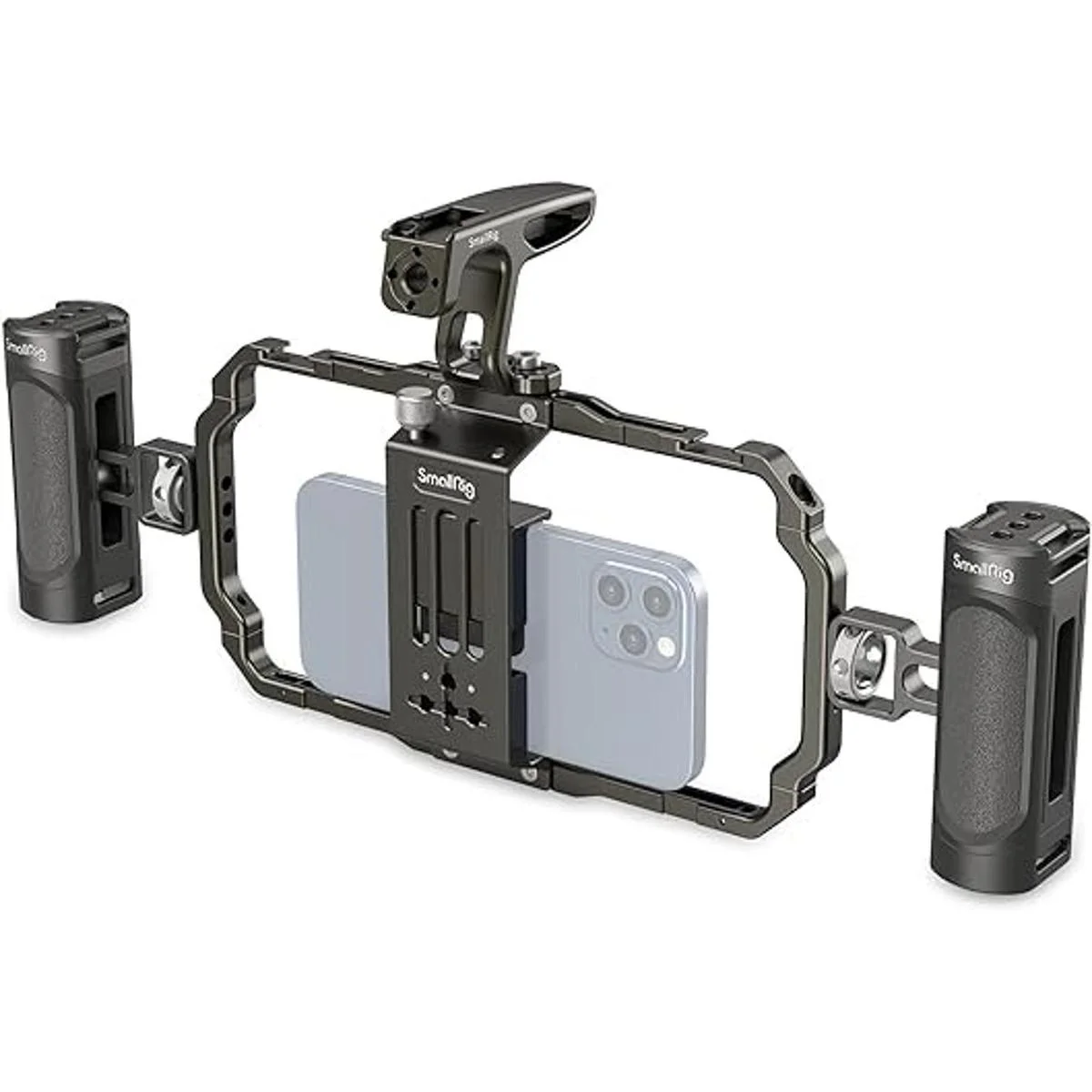 SmallRig Kit universal de aparejo de video para iPhone 1312 Pro, jaula de aluminio de mano con asas, aparejo estabilizador de video para videografía vlogtransmisión en vivo 3155